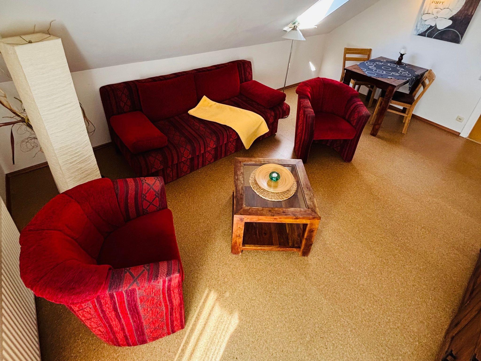 Unsere Nichtraucherwohnung heißt Ihr Haustier herzlich willkommen, damit die ganze Familie die Auszeit genießen kann. Ein eigener Parkplatz steht ebenfalls zur Verfügung, um Ihren Aufenthalt so angenehm wie möglich zu gestalten.