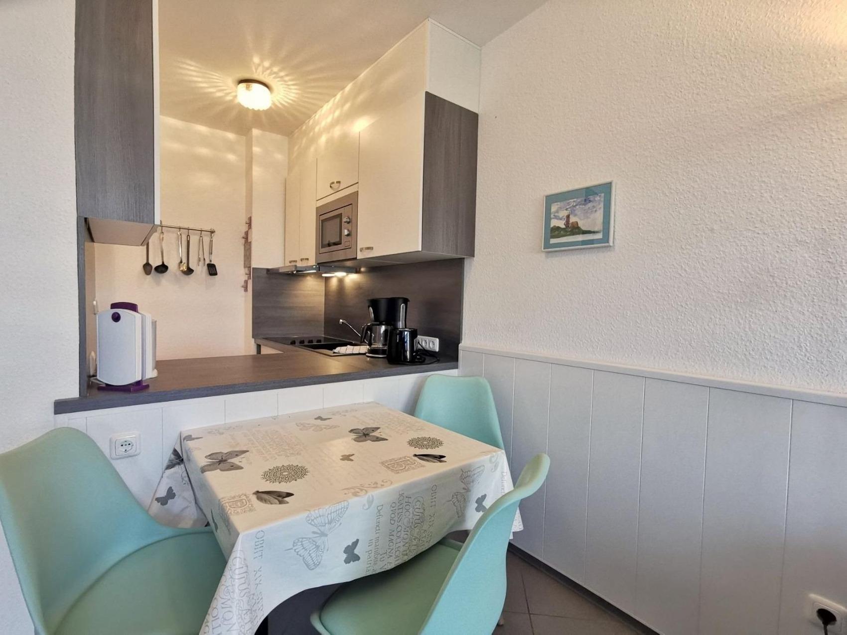 Diese renovierte Erdgeschosswohnung ist zentral gelegen in einer ruhigen Wohnanlage. Sie benötigen nur wenige Gehminuten zum Badestrand. Die Wohnung ist für Familien bis 4 Personen geeignet. Die Wohnung besteht aus einem Schlafzimmer mit 2 Einzelbetten und 1 Etagenbett, einem Wohnzimmer mit Essplatz und Durchreiche zur neuen Einbauküche, Flur und einem modernen Duschbad. Eine blickgeschützte Terrasse und ein PKW-Stellplatz gehören zur komplett gefliesten Wohnung.