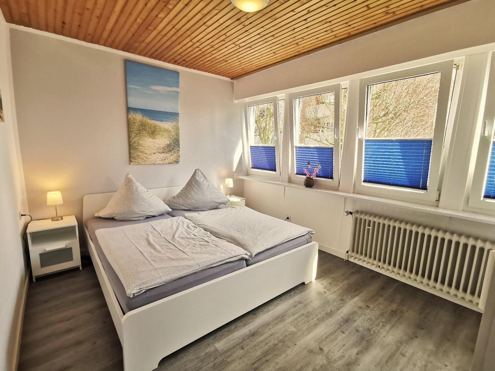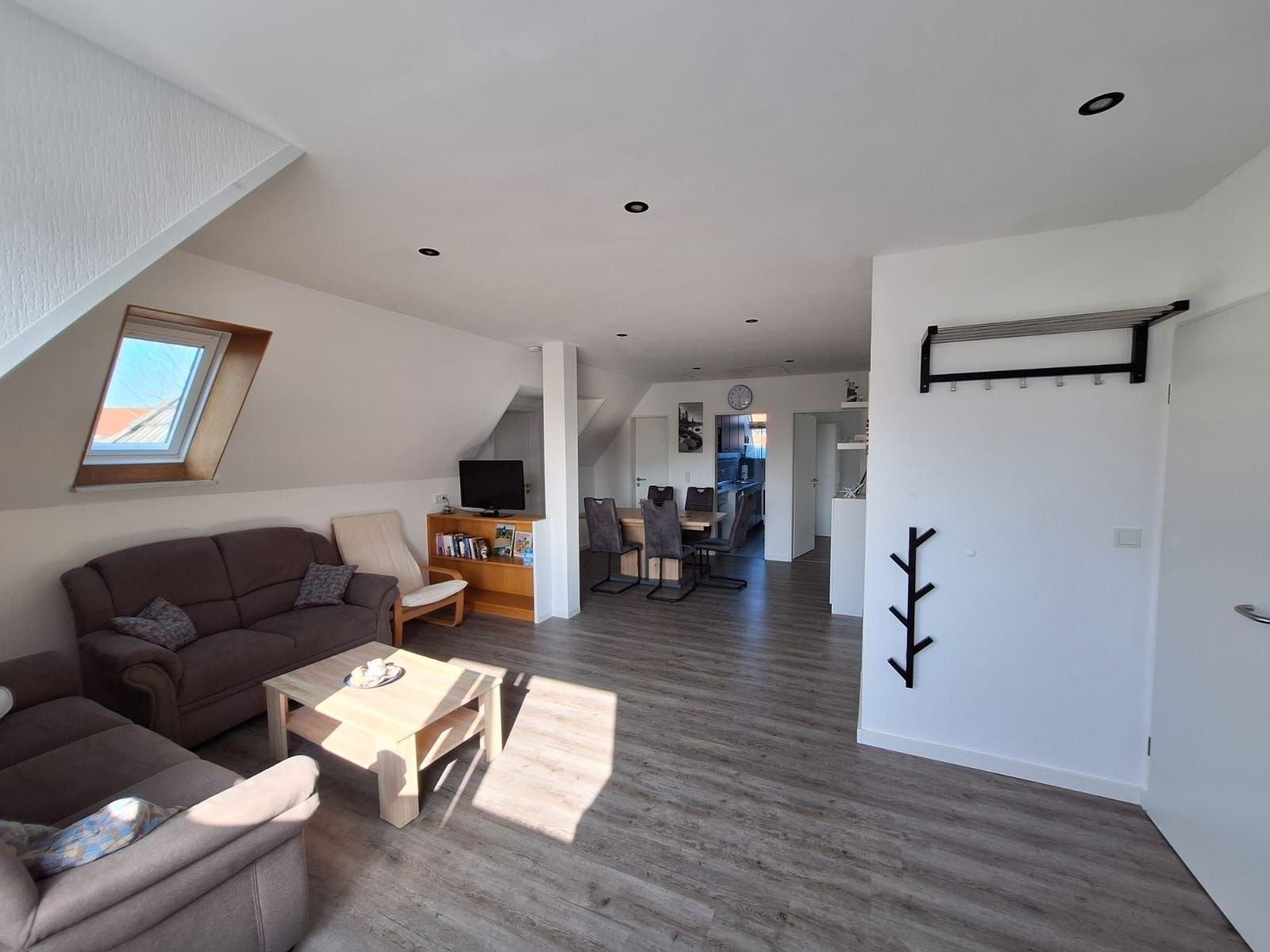 Unsere frisch renovierte ca. 75 qm große Ferienwohnung befindet sich im 1. Stock eines Zweifamilienhauses, ist zentral und doch ruhig in einer Sackgasse gelegen. Die Wohnung teilt sich auf in ein Badezimmer mit Dusche, ein Gäste -WC, voll ausgestattete Küche, ein Schlafzimmer mit Ehebett sowie zwei Schlafzimmer mit jeweils 2 Einzelbetten. Ein Kinderbett steht ebenfalls zur Verfügung. Das Wohn-/Esszimmer lädt zum gemütlichen beisammen sein ein. Ein Strandkorb im Strandbad Horumersiel ist bei Buchungen zwischen dem 15.04 - 30.09.2022 im Preis inbegriffen.Mit Rücksicht auf die nicht rauchenden Feriengäste und Allergiker haben wir die Ferienwohnung zur "rauch- und tierfreien Zone" erklärt. Zur Wohnung gehört eine Abstellfläche für PKW sowie eine Garage zur gemeinschaftlichen Nutzung um Fahrräder, Kinderwagen etc. abzustellen.Das Zentrum von Horumersiel sowie den Yachthafen und den langläufigen Rasenstrand erreichen Sie in nur wenigen Gehminuten.Der Rasenstrand von Horumersiel ist besonders für Familien mit Kindern und Strandkorbliebhaber geeignet. Entspanntes Toben im Wattenmeer, ausgelassenes Sonnenbaden auf der Wiese oder im Strandkorb -zwischendurch eine Wanderung durchs Watt oder ein Spaziergang auf der Promenade am Meer machen den Strandaufenthalt perfekt.