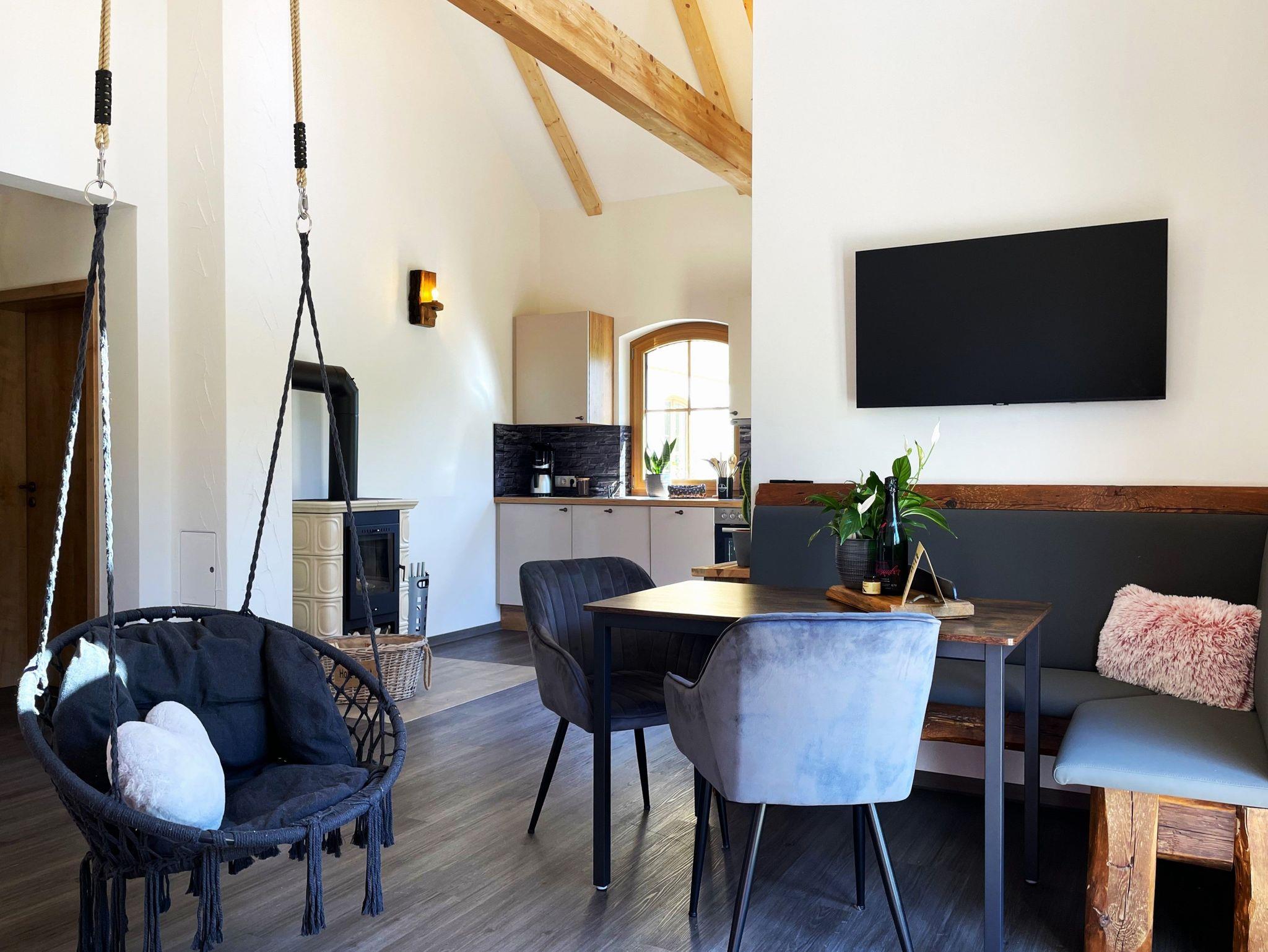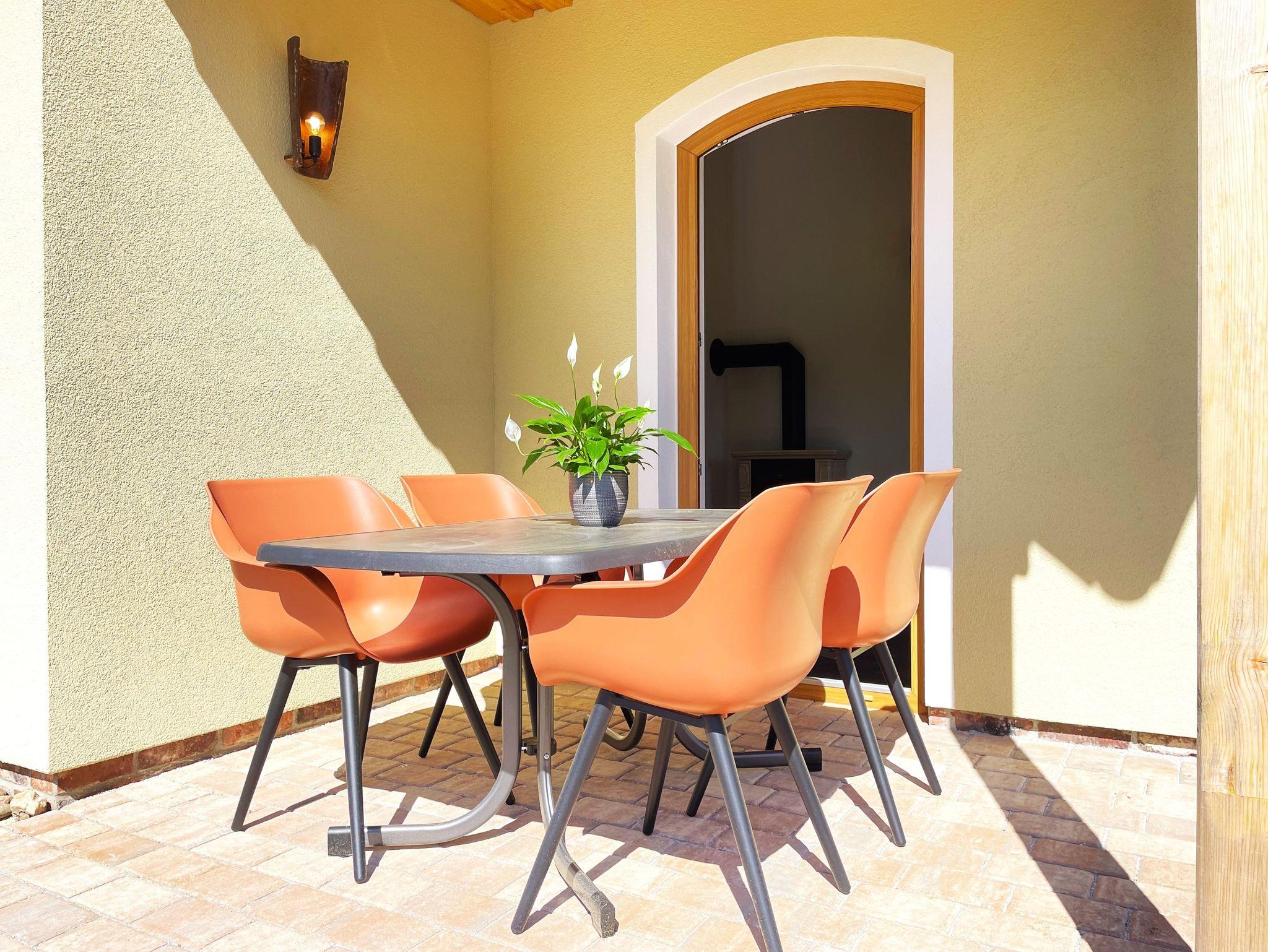 Von der Terrasse aus können Sie direkt ins Freie treten. Die gemütlichen Terrassenmöbel laden zum Verweilen ein ? sei es zum Genießen der frischen Luft, zum Speisen oder einfach zum Relaxen. Die Terrasse ist ein idealer Ort, um die ländliche Ruhe zu erleben und die Schönheit der Natur zu spüren.