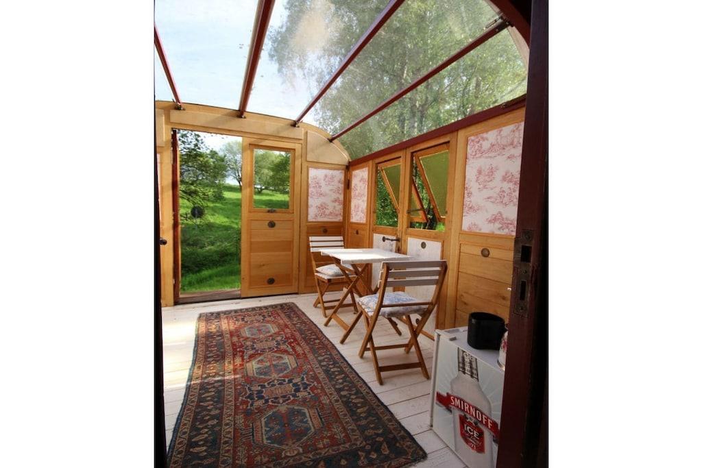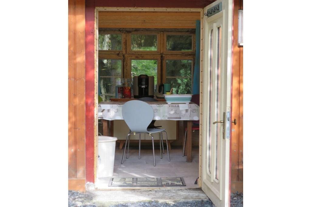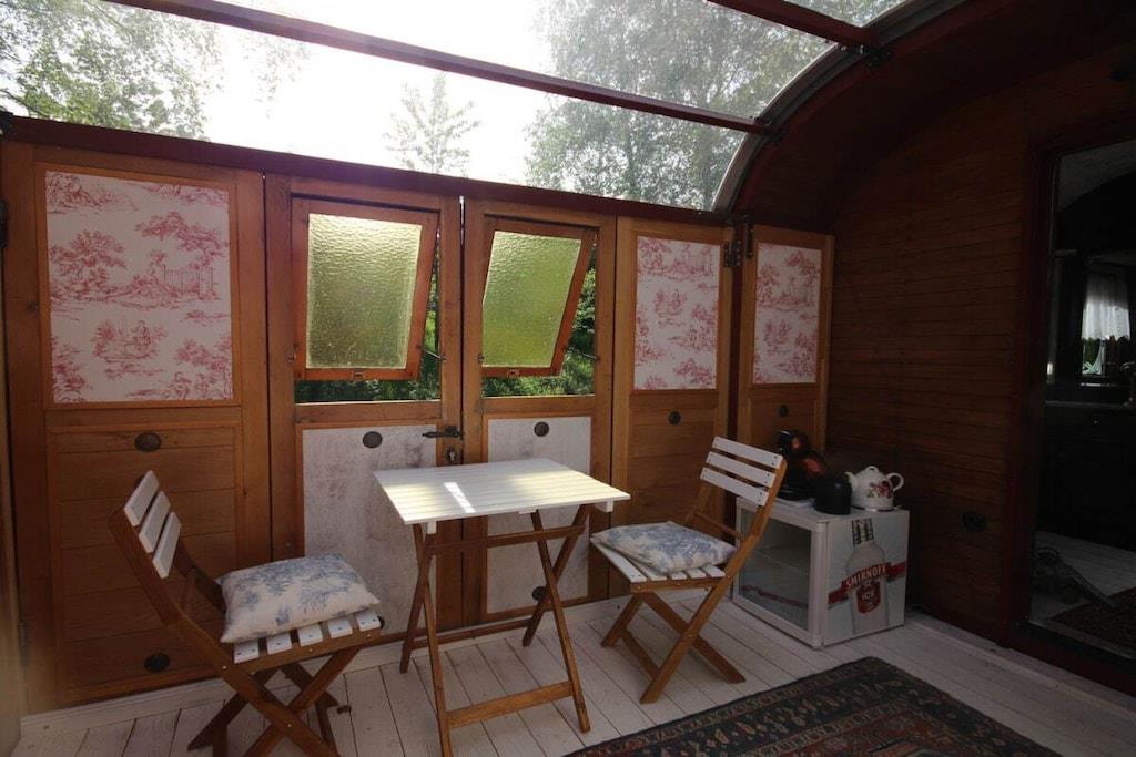 Stentaler is located near our pond, surrounded by trees and meadows. Guests have access to a separate bathhouse with a wellness shower and sauna. The bathhouse is approximately 10-15 meters away. The circus wagon is equipped with a refrigerator, a coffee maker, a kettle, as well as dishes and cutlery. The wagon is a wonderful place to relax and unwind. A sound system is available, but there is no television or Wi-Fi. Wi-Fi is available at the coach house. Electricity is charged according to consumption at EURO0.50 per kWh. Towels and bed linens must be brought along or can be rented for EURO15.00 per person. For cooking, our guests have access to a separate garden house with a fully equipped kitchen, which is also available for use by other guests at the pond. A certain enthusiasm for camping and adventure is advantageous for staying in the circus wagon.