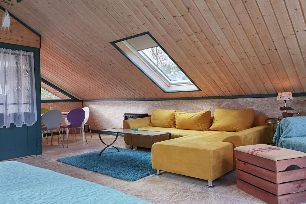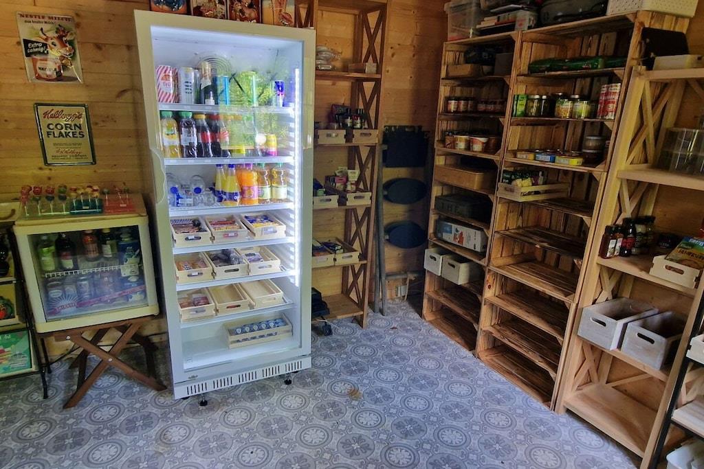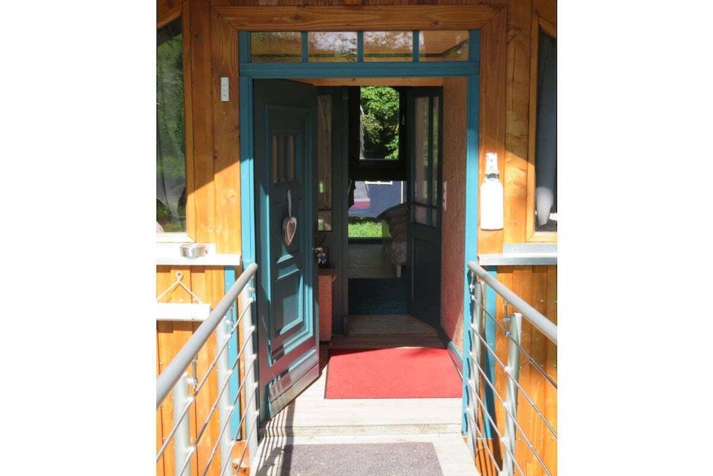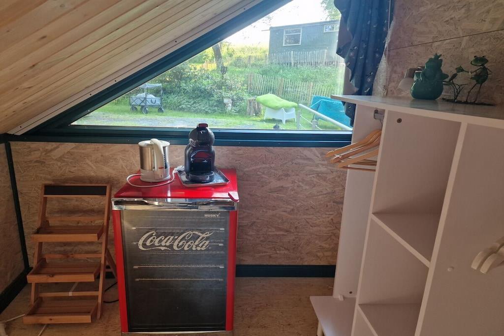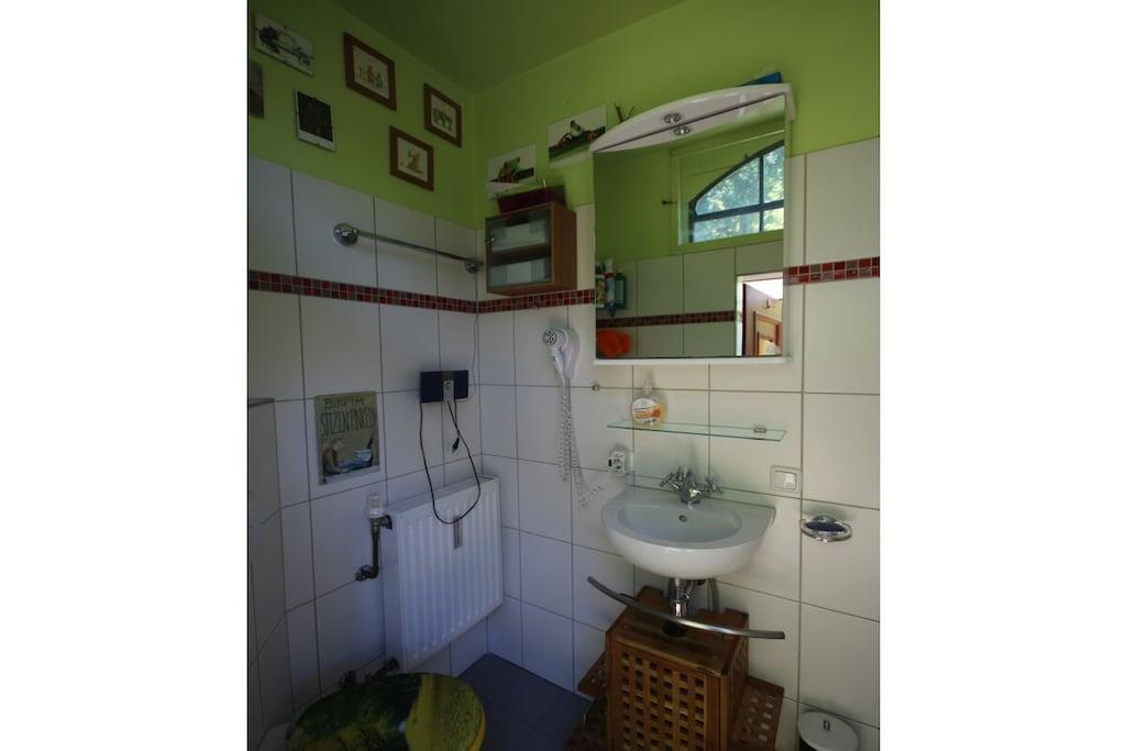 The boathouse is located directly on our pond, with a direct view of it. There is a separate toilet directly opposite the boathouse, exclusively for boathouse guests, which also has a sink. The bathroom and kitchen are not in the boathouse but are separate on the property. The bathroom with shower is about 50 meters away, and the kitchen is about 20 meters away and equipped with a camping stove, dishes, cutlery, etc. Both are for your exclusive use. The boathouse also has a refrigerator, kettle, and pod coffee machine.