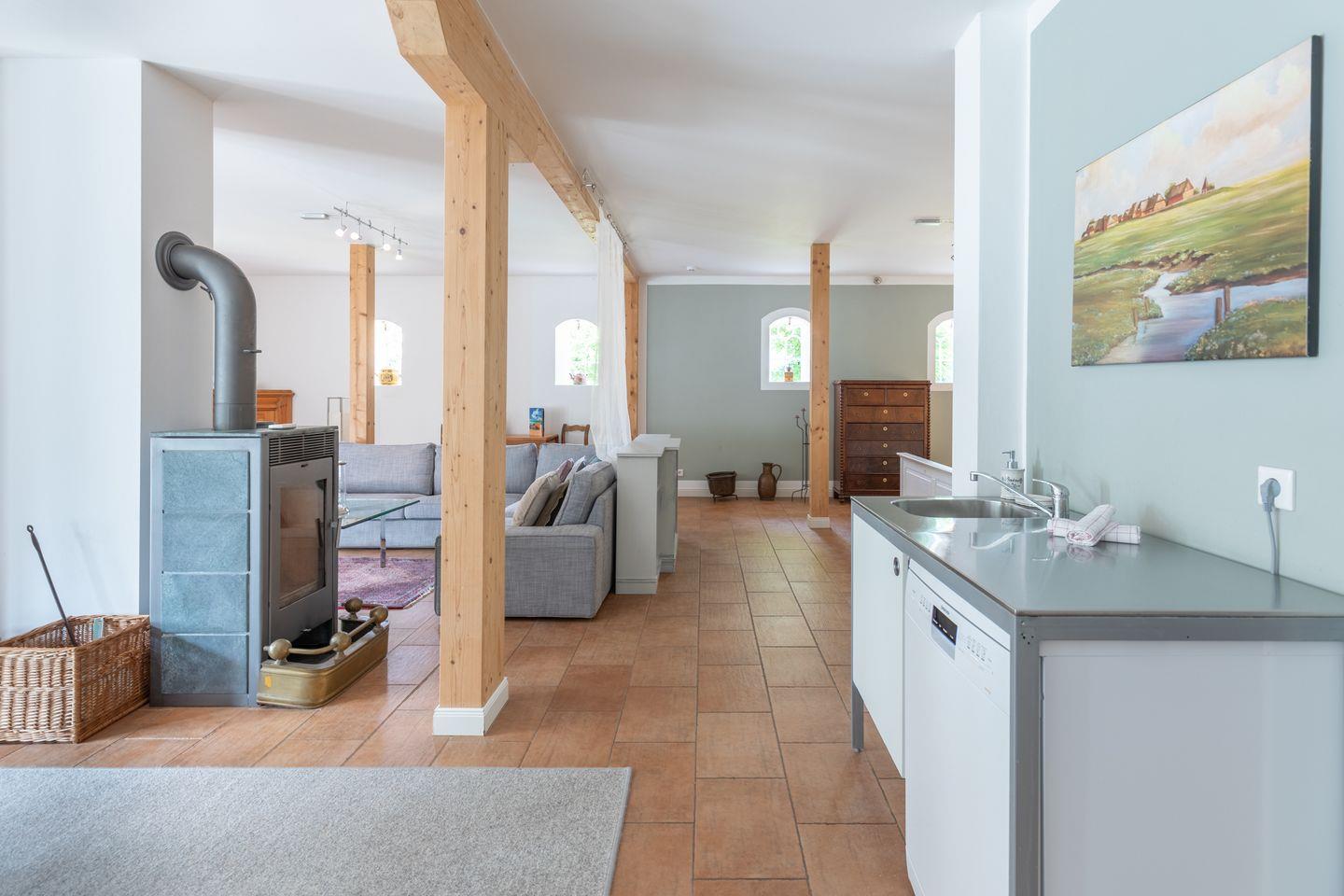 Die 1-Zimmerwohnung befindet sich im Erdgeschoss. Es erwartet Sie ein großzügiger Wohnraum mit Sofaecke und Smart-TV, Esstisch und Schlafsofa für die 3. Person. Die offene Küche mit Backofen, 4-Plattenherd, Geschirrspüler, Toaster, Kaffeemaschine (Filtergröße 4), Wasserkocher uvm. eignet sich hervorragend für Selbstversorger. Das Badezimmer bietet Ihnen eine Dusche und das WC.