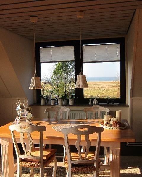 Die Wohnfläche von 140qm teilt sich in Einbauküche mit Spülmaschine, Ess-/Wohnbereich mit großem Familientisch, wovon Sie den direkten Blick auf die Nordsee über die Husumer Bucht hinweg nach Süderhafen auf Nordstrand genießen können. Die Loggia mit Blick zur Nordsee ist ideal zum "Schmöken" ! Die beiden Schlafzimmer, Elternschlafzimmer mit großem Doppelbett, im Winter mit Blick zur Nordsee, das kleinere Schlafzimmer mit teilbarem Boxspringbett 160x 200 m sind ideal zum Stressabbau! Das Badezimmer mit extragroßer Rainshowerdusche, Waschmaschine, großer Waschtisch. Die Wohnung befindet sich im 1. Stock und ist über eine bequeme Außentreppe zu erreichen! (Hundefreundlicher Treppenbelag) Bettwäsche und Handtücher können gegen eine Gebühr ( Bettwäsche 10.- und 5.-€ für die Handtücher pro Person bereitgestellt werden !!!