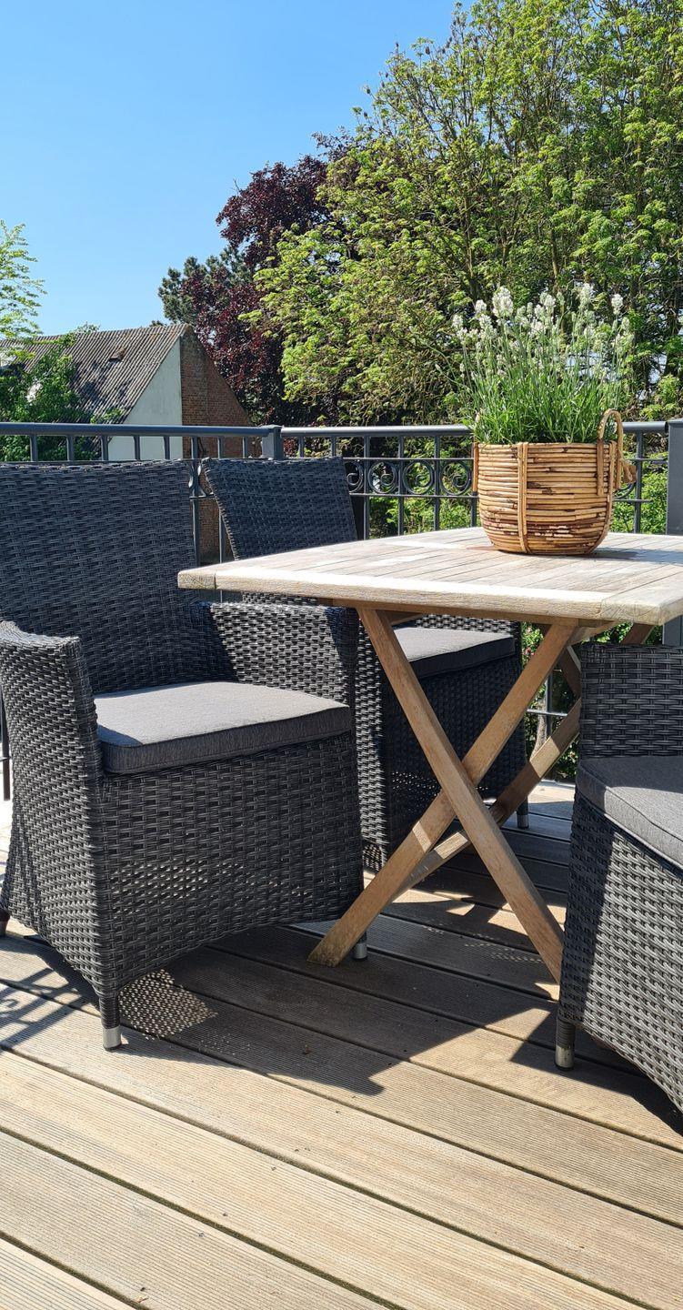 Die Ferienwohnung mit 80 qm Wohnfläche wurde komplett renoviert und komfortabel eingerichtet. Geschmackvoller Wohnbereich mit großem Flachbild-TV, Essbereich, komfortabel eingerichtete Küche mit Geschirrspüler, 4-Platten-Ceranfeld, Kühlschrank mit Gefrierfach, Kaffeemaschine, Wasserkocher und Toaster. Von hier aus haben Sie Zugang zu dem schönen Balkon. Das Schlafzimmer ist mit einem gemütlichen Doppelbett (180x200) ausgestattet. Das zweite Schlafzimmer bietet Ihnen zwei Einzelbetten.