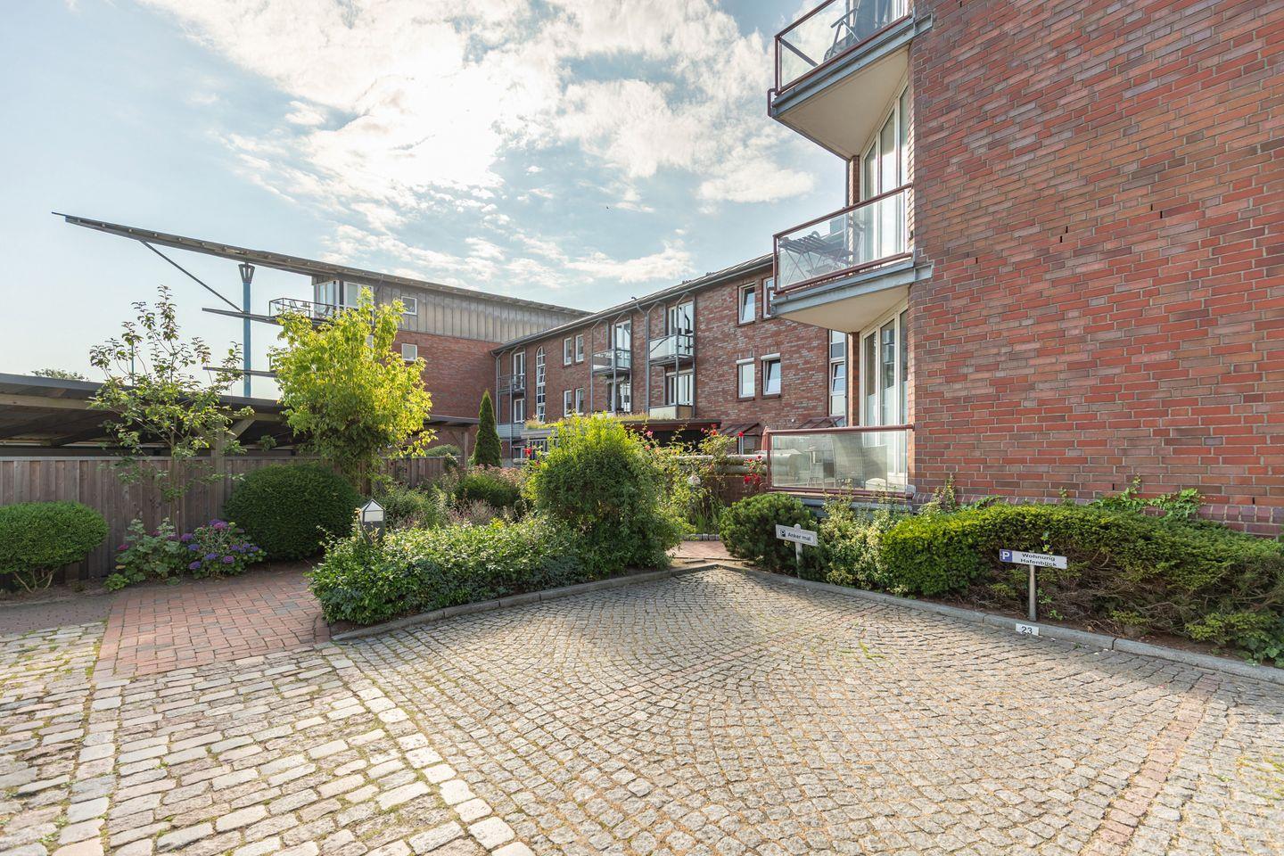Die Ferienwohnung liegt in ausgezeichneter Lage direkt Am Binnenhafen im Herzen von Husum. Sie befindet sich in einem gepflegten Wohngebäude unmittelbar an der Husumer Au, einem Seitenarm des Hafens. Der freie und unverbaute Blick auf das Wasser ist eines der besonderen Merkmale dieser Unterkunft. Vom Wohnbereich oder Balkon aus kann man das beruhigende Spiel des Wassers, vorbeiziehende Boote und Wasservögel beobachten, eine reizvolle Kulisse zu jeder Tageszeit. Der malerische Husumer Binnenhafen mit seinen Restaurants, kleinen Läden und Cafés beginnt direkt vor der Haustür. Der Wochenmarkt auf dem Marktplatz, das Schloss vor Husum mit seinem Schlosspark sowie das Theodor-Storm-Haus sind bequem zu Fuß erreichbar. Ebenso befinden sich Bäcker, Supermärkte und weitere Einkaufsmöglichkeiten in unmittelbarer Umgebung. Auch der Bahnhof ist fußläufig erreichbar. Trotz der zentralen Lage bleibt die Wohnung ruhig, ideal für alle, die kurze Wege schätzen und dennoch entspannte Stunden mit Blick aufs Wasser genießen möchten.