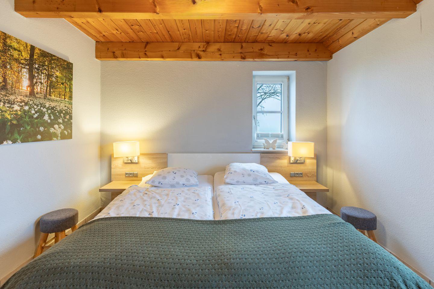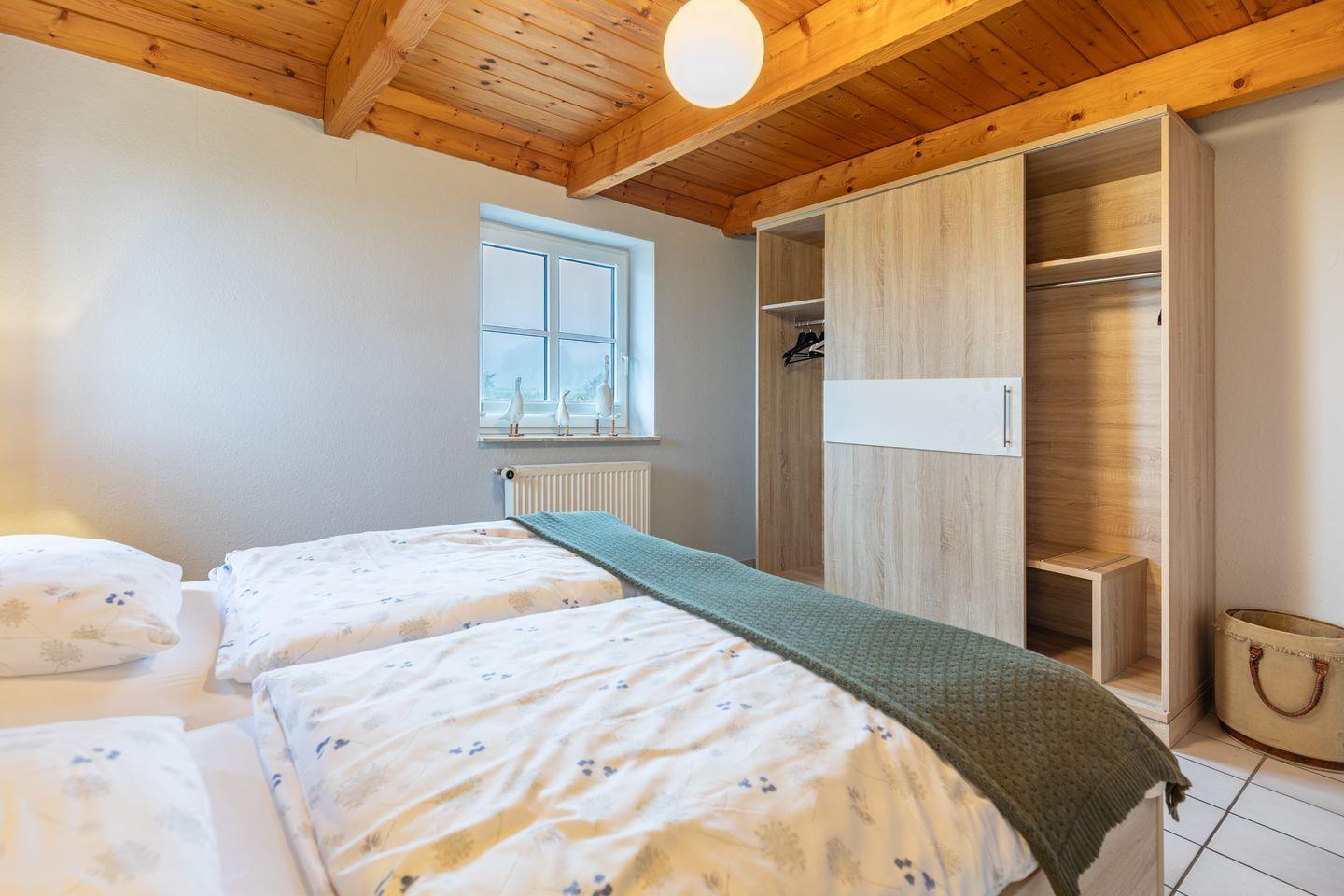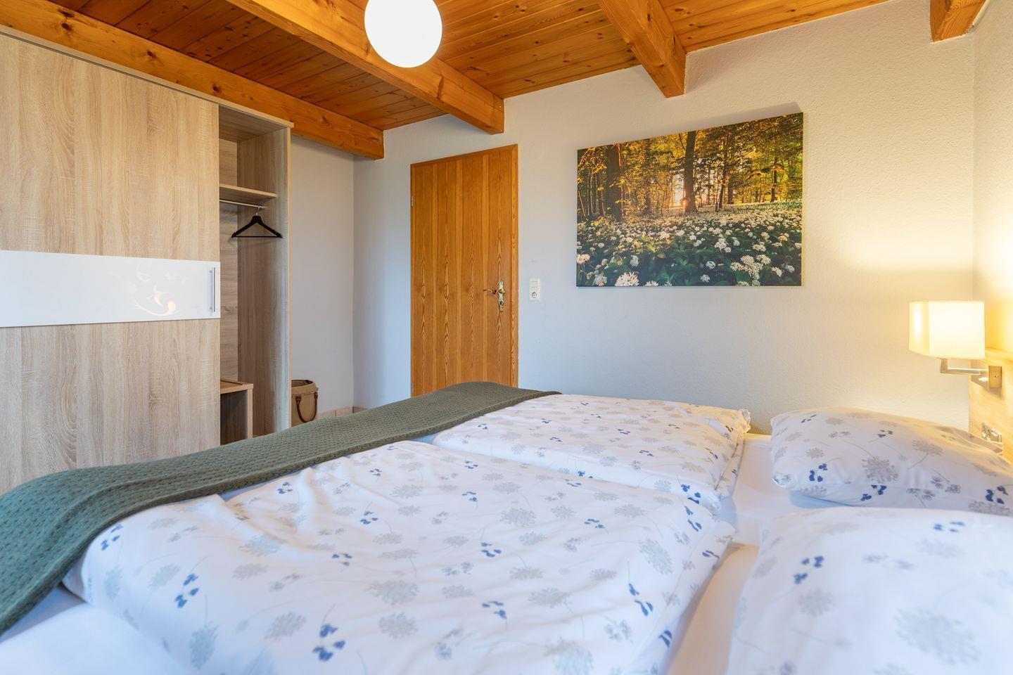 Zwei separate Schlafzimmer mit je einem bequemen Doppelbett (180x200) sorgen für einen erholsamen Schlaf. In einem Schlafzimmer bietet ein großzügiger Kleiderschrank Stauraum und Ablagefläche. In dem zweiten Schlafzimmer steht Ihnen eine Kommode zur Verfügung.