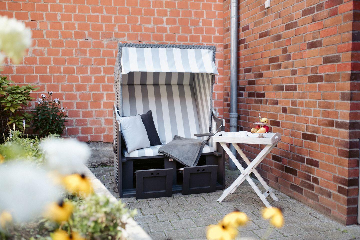 Die Ferienwohnung Anker Mal Husum Stadt bietet auf 53 m² modernen Komfort für zwei Personen und liegt im Parterre im Herzen von Husum. Die Unterkunft verfügt über eine offene Küche mit Ceranherd, Spülmaschine und Backofen, WLAN, eine Terrasse mit Strandkorb sowie einen Privatparkplatz. Einkaufsmöglichkeiten und Restaurants erreichen Sie bequem zu Fuß.