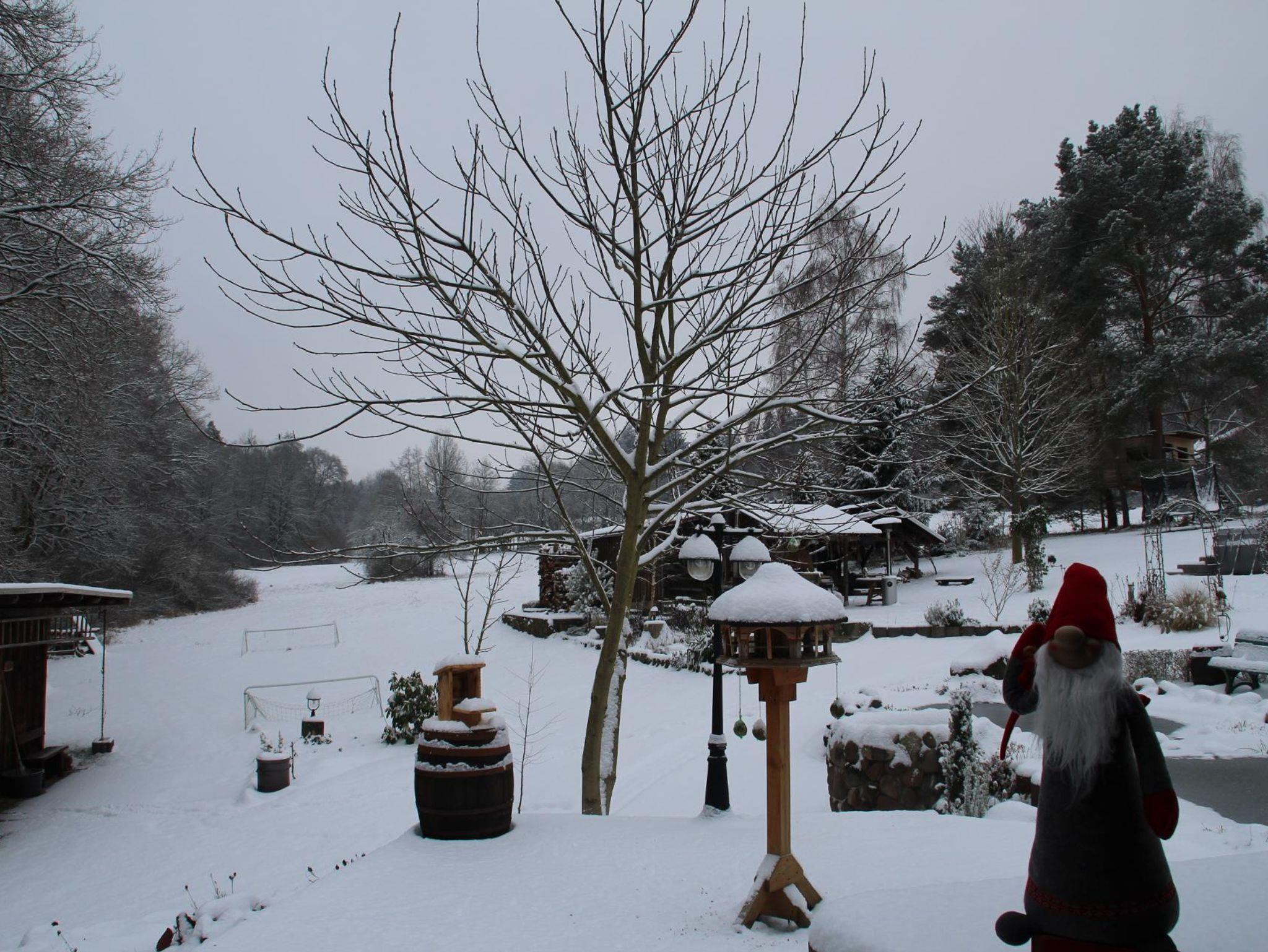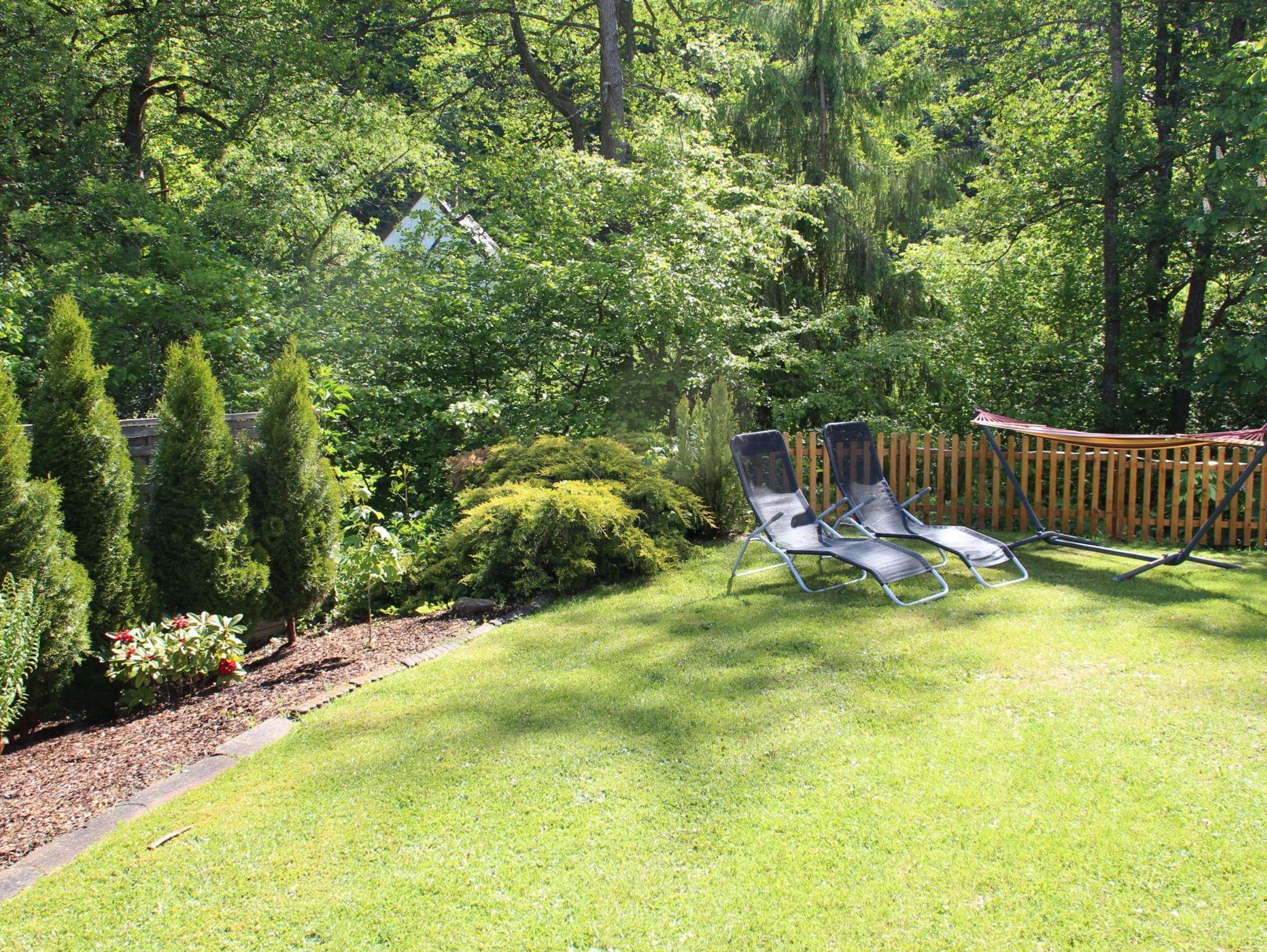 Das am Ortsrand (in einer ruhigen Seitenstraße) gelegene Grundstück wird umsäumt von Wald, Wiesen und einem kleinen Bach. Auf dem Grundstück befindet sich neben dem Koi-Teich auch eine überdachte Grillstelle mit Gartenhaus (hier, wie auch im Party-Keller Getränke-Service) sowie ein Steinbackofen.