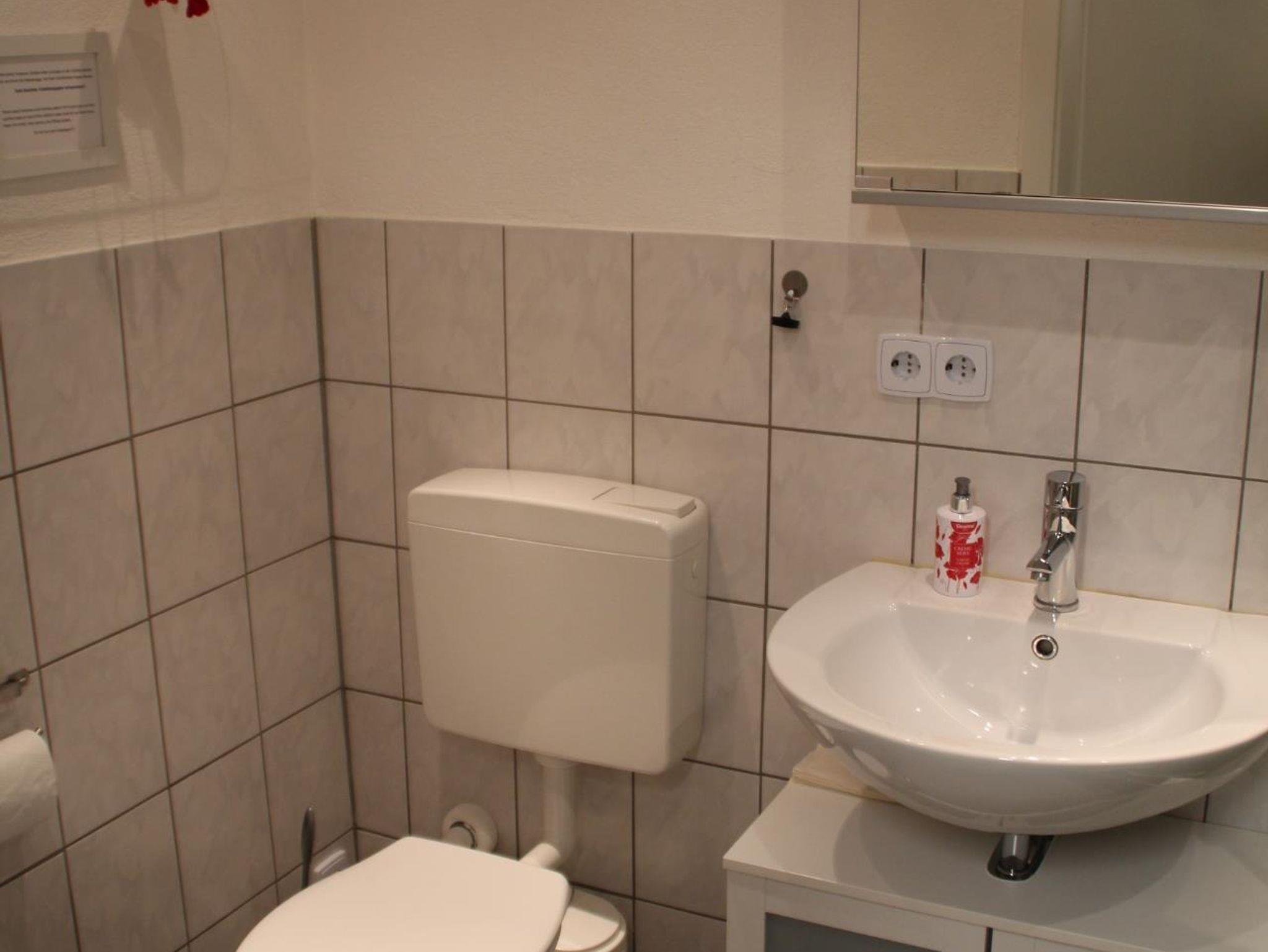 Die Betten sind bezogen und im Bad gibt es ausreichend Handtücher.