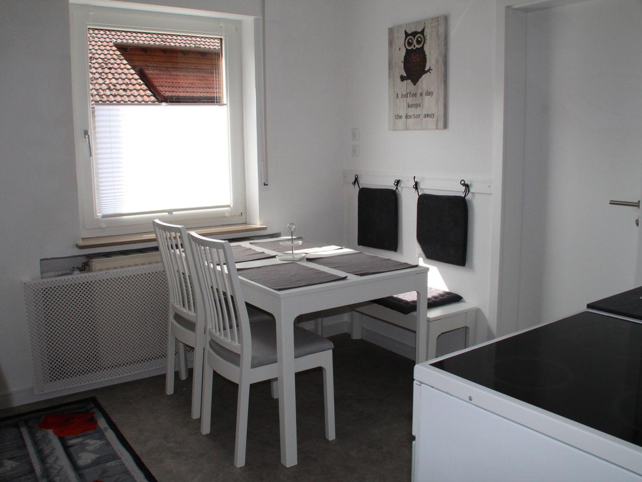 Die Wohnung umfasst 82 qm und befindet sich in einem freistehenden Einfamilienhaus. Im Souterrain ist eine weitere Ferienwohnung eingerichtet. Wir bitten unsere Gäste im Haus nicht zu rauchen. Unsere Wohngegend ist sehr ruhig, wir haben wenig Autoverkehr, nette Nachbarn und nach hinten raus gibt’s Wiesen und Wald.