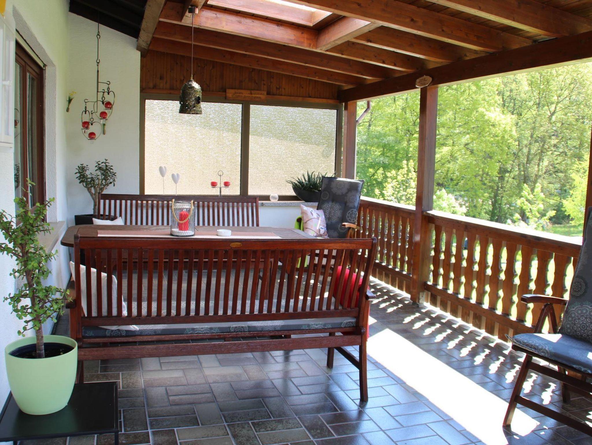 Die überdachte Terrasse sowie der angrenzende Balkon mit Markise, sind nach Süden ausgerichtet und liegen, sofern sie scheint, von morgens bis abends in der Sonne. Entsprechende Möbel stehen unseren Gästen zur Verfügung, sodass ein Frühstück im Freien oder ein Sonnenbad zum Erholen einlädt.