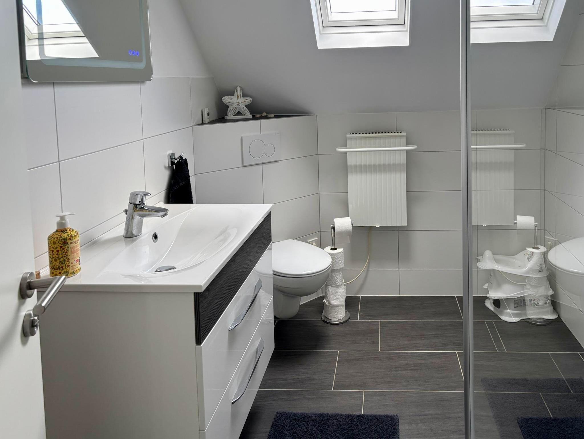 Im OG gibt es ein Badezimmer mit Dusche und drei Schlafzimmer.