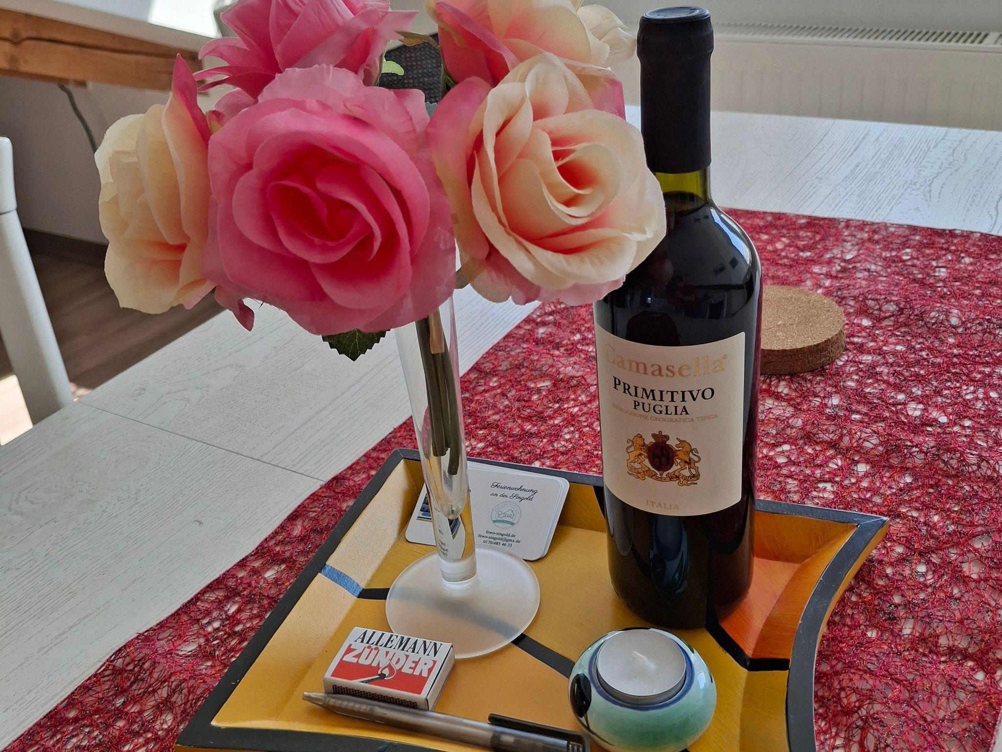 zusätzliches Gästebett 90 x 200 cm), einer voll ausgestatteten Küche, einem Schlafzimmer mit Doppelbett (kann in 2 Einzelbetten umfunktioniert werden), einem Tageslichtbad mit Dusche (80x80x190 cm), WC und einer Waschmaschine. WLAN, 2 TVs und Radio stehen ebenfalls zu ihrer Verfügung. Für Kleinkinder stehen ein Babybett, Hochstuhl und Wickelauflage bereit. Die Wohnung besteht aus Dachschrägen mit einem Sichtdachstuhl und Dachgauben. Die gesamte Wohnung ist mit einem Vinylboden ausgelegt und in jedem Zimmer sind die Fenster mit elektrischen Rollläden ausgestattet.