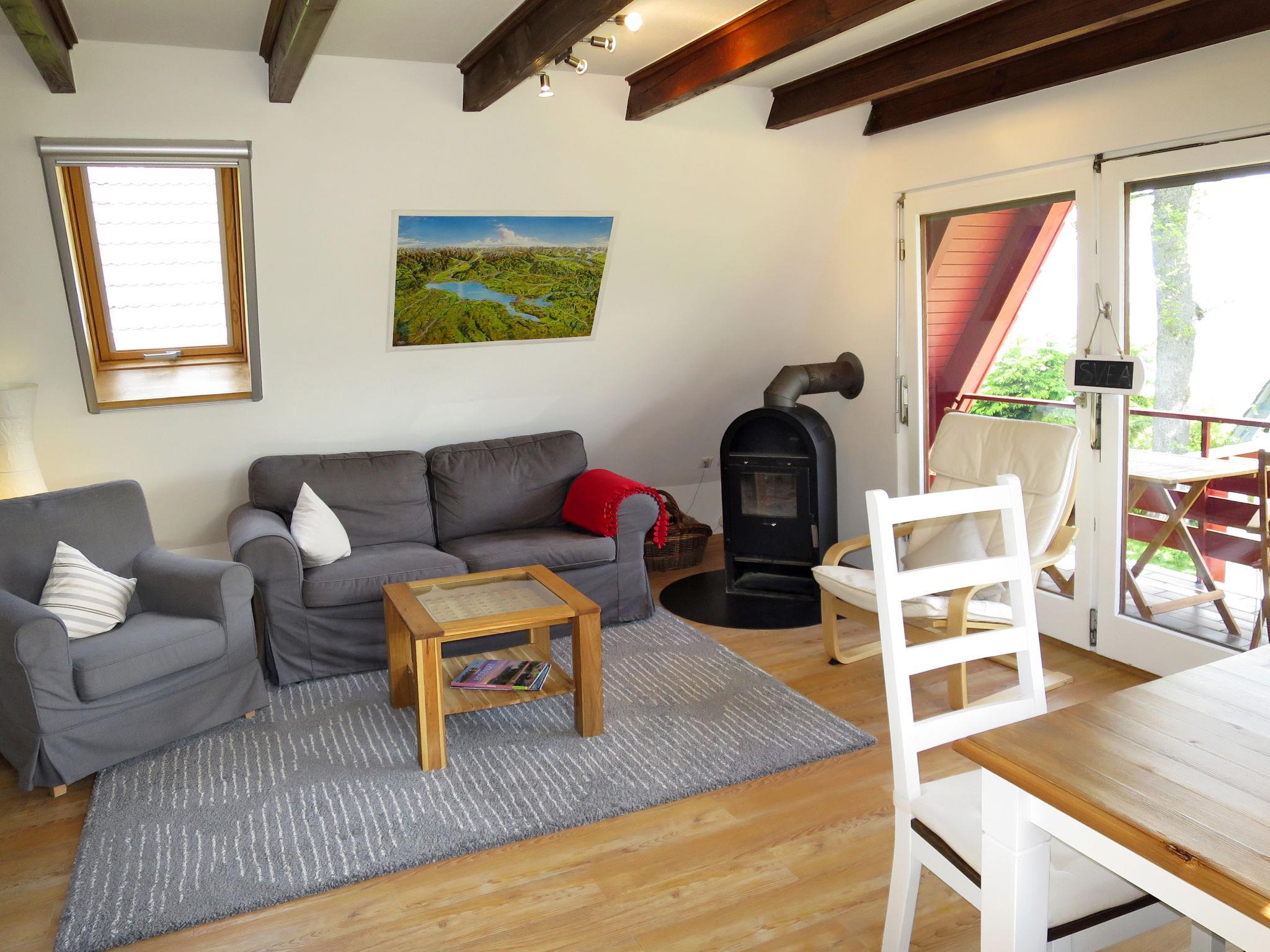 Holiday development "Pfrungen". Above Illmensee 1.8 km from the centre of Illmensee, 30 km from the centre of Meersburg, 55 km from the centre of Lindau, on a slope, 1.8 km from the lake. For shared use: children's playground. Private: property 320 m2 with lawn, parking at the house. Shop 1.8 km, bus stop "Pfrungen Abzwg. Feriendorf" 850 m, railway station "Überlingen" 29 km. Golf course (9 hole) 7 km.