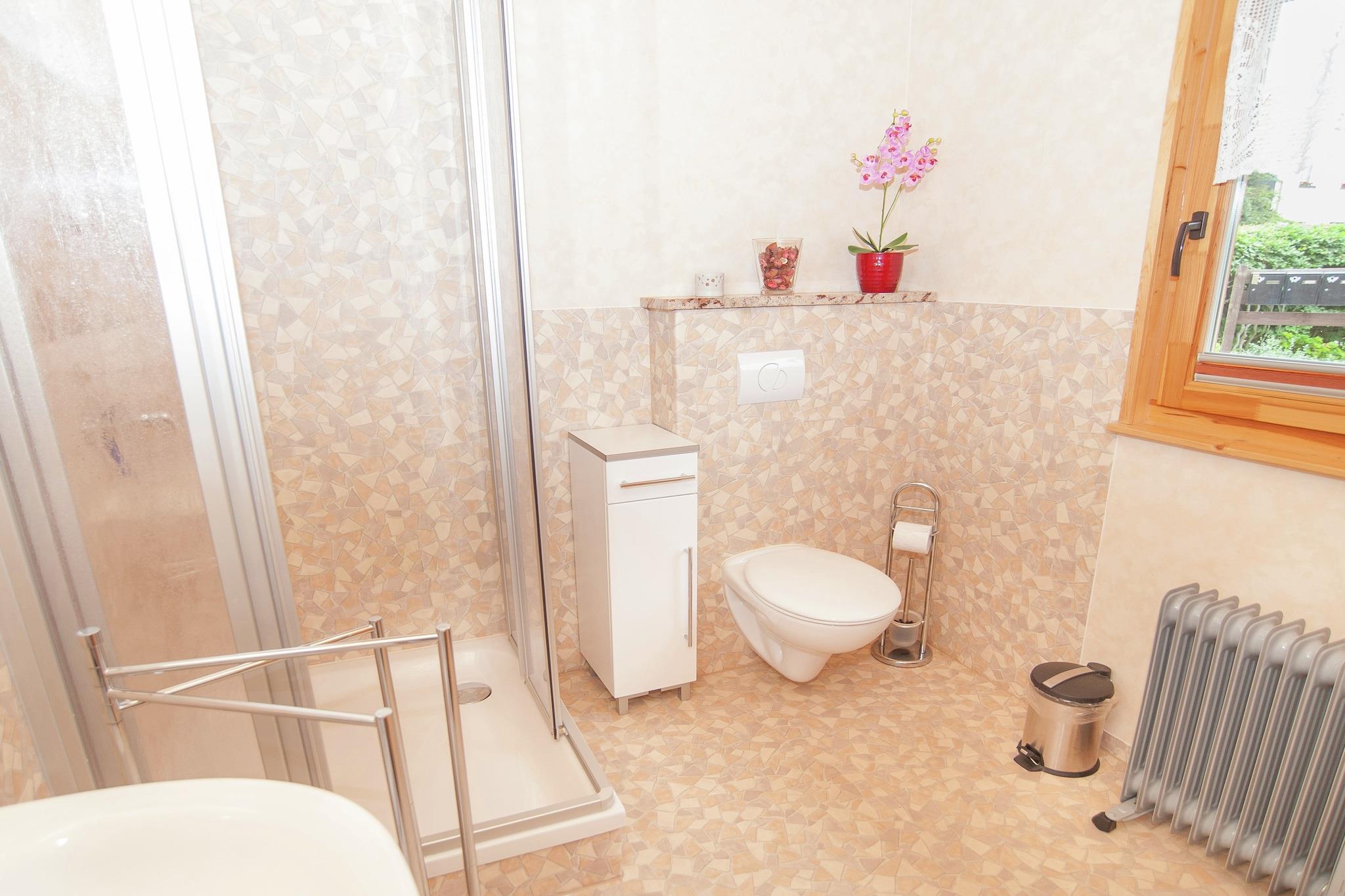 Dette feriehus med 2 soveværelser i Gehren tilbyder en fredelig flugt mellem Thüringer Wald. Huset er ideelt til en lille familie eller gruppe på fire og har en møbleret terrasse perfekt til at slappe af med en kølig drink eller til at grille. Indretningen giver varme med indendørs varme og hyggelig pejs, mens det åbne køkken gør det nemt at tilberede måltider. Et bordtennisbord tilføjer sjov til fritiden, og altanen er et dejligt sted at nyde morgenkaffen med udsigt. Parkering er tilgængelig på stedet for nemheds skyld. Træd udenfor for at opdage godt afmærkede vandre- og cykelstier, der begynder lige fra dit dørtrin. Vinteren byder på muligheder for skiløb og snowboarding i det nærliggende Oberhof. Byens centrum ligger kun 500 m væk og byder på restauranter, supermarkeder og lokale pubber. Naturentusiaster kan nyde rolige skovvandringer 2 km, mens historieelskere kan planlægge dagsture til Wartburg Slot eller Friedenstein Slot. Denne placering balancerer eventyr, afslapning og kulturelle oplevelser for hver gæst. Indvendigt er hjemmet omhyggeligt indrettet til komfort, med to soveværelser med plads til fire gæster. Moderne faciliteter omfatter en opvaskemaskine, mikroovn, kaffemaskine og en gaspejs i opholdsstuen. Udendørs rum er designet til afslapning med havemøbler, grill og balkon. Bemærk venligst, at denne ejendom ikke er egnet til børn under 10 år. Den nærmeste lufthavn ligger 44 km væk, hvilket sikrer nem adgang og samtidig bevare et roligt, skovklædt oase.