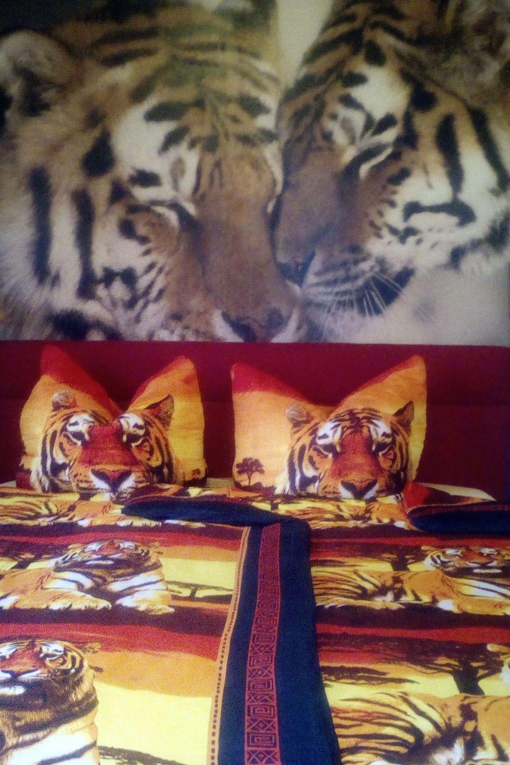 Inside, a large living/bedroom awaits you, furnished with a comfortable box-spring double bed, a sofa, an armchair, a small work desk and a TV. Everything is decorated in warm colours and lovingly decorated to create an inviting and homely atmosphere. The fully equipped kitchen with dining table invites you to enjoy meals together, while the modern bathroom with shower and WC offers every comfort.