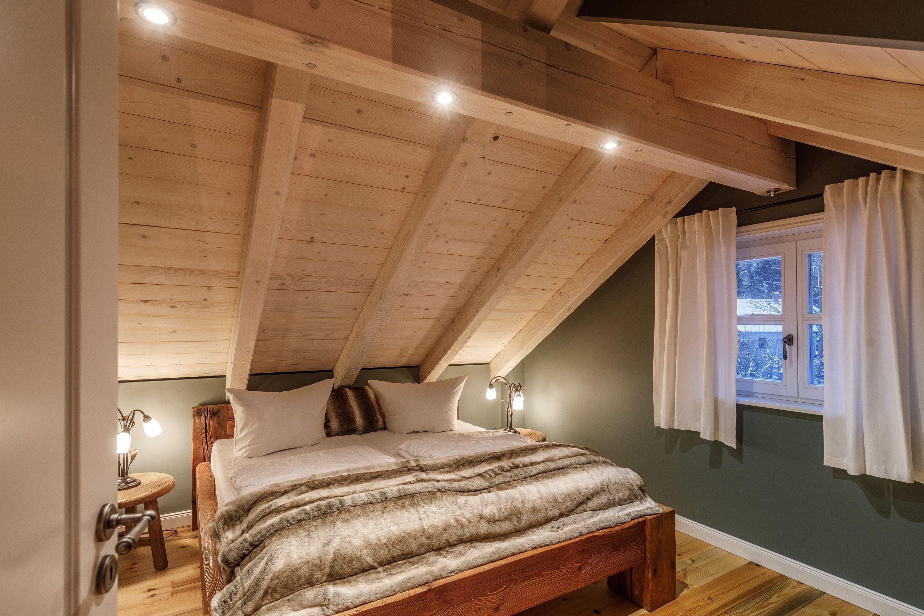 1 Schlafzimmer mit Doppelbett im EG und 2 Schlafzimmer mit Doppelbett im DG, inkl. Bettwäsche Zusatz: Yeti Bett auf offener Galerie zum Träumen