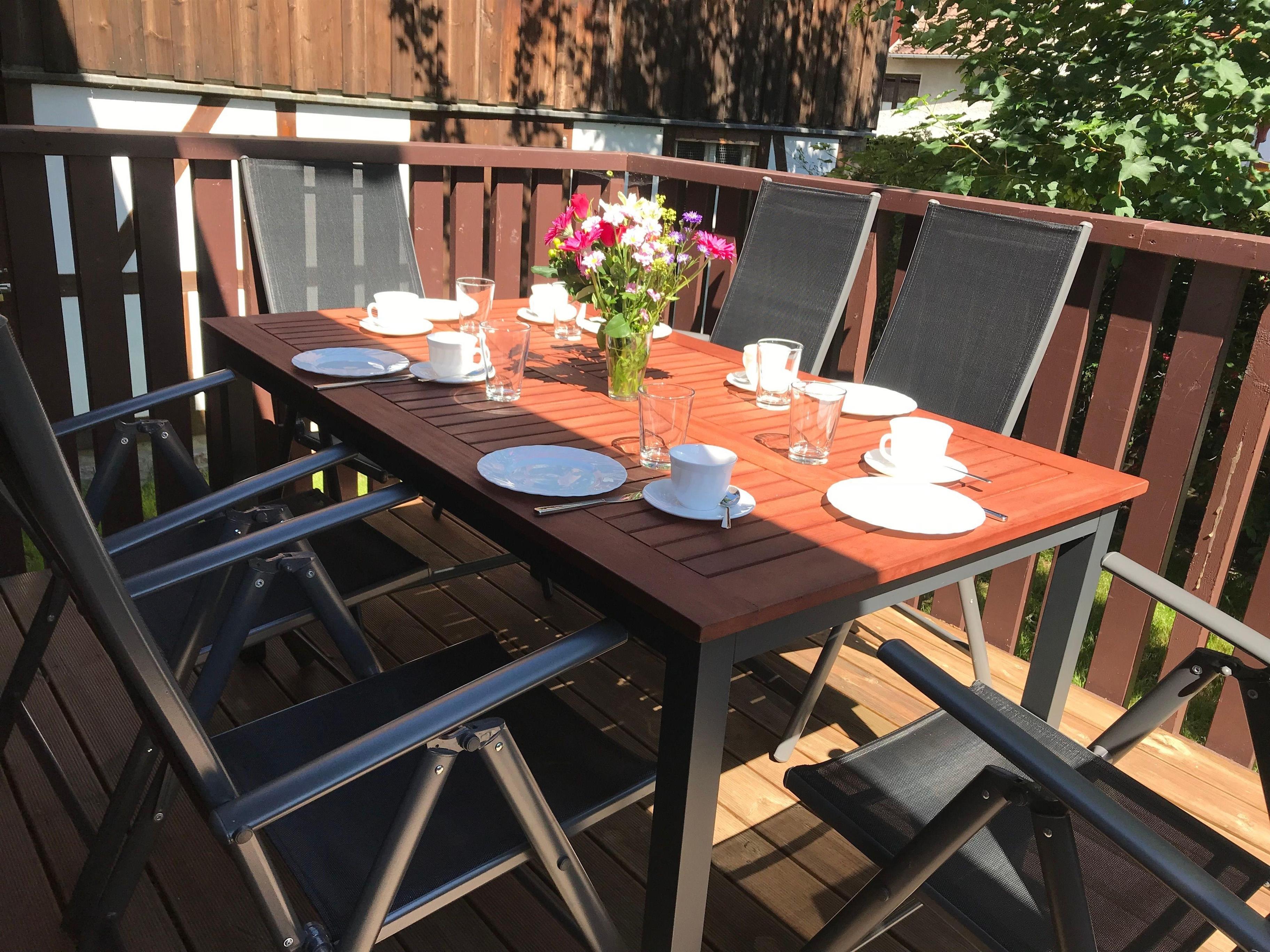 Terrasse und Grillmöglichkeiten: Die von der Küche zugängliche Terrasse mit Gartenmöbeln und Grill lädt zu entspannten Mahlzeiten im Freien ein – ideal für sonnige Tage und laue Abende.