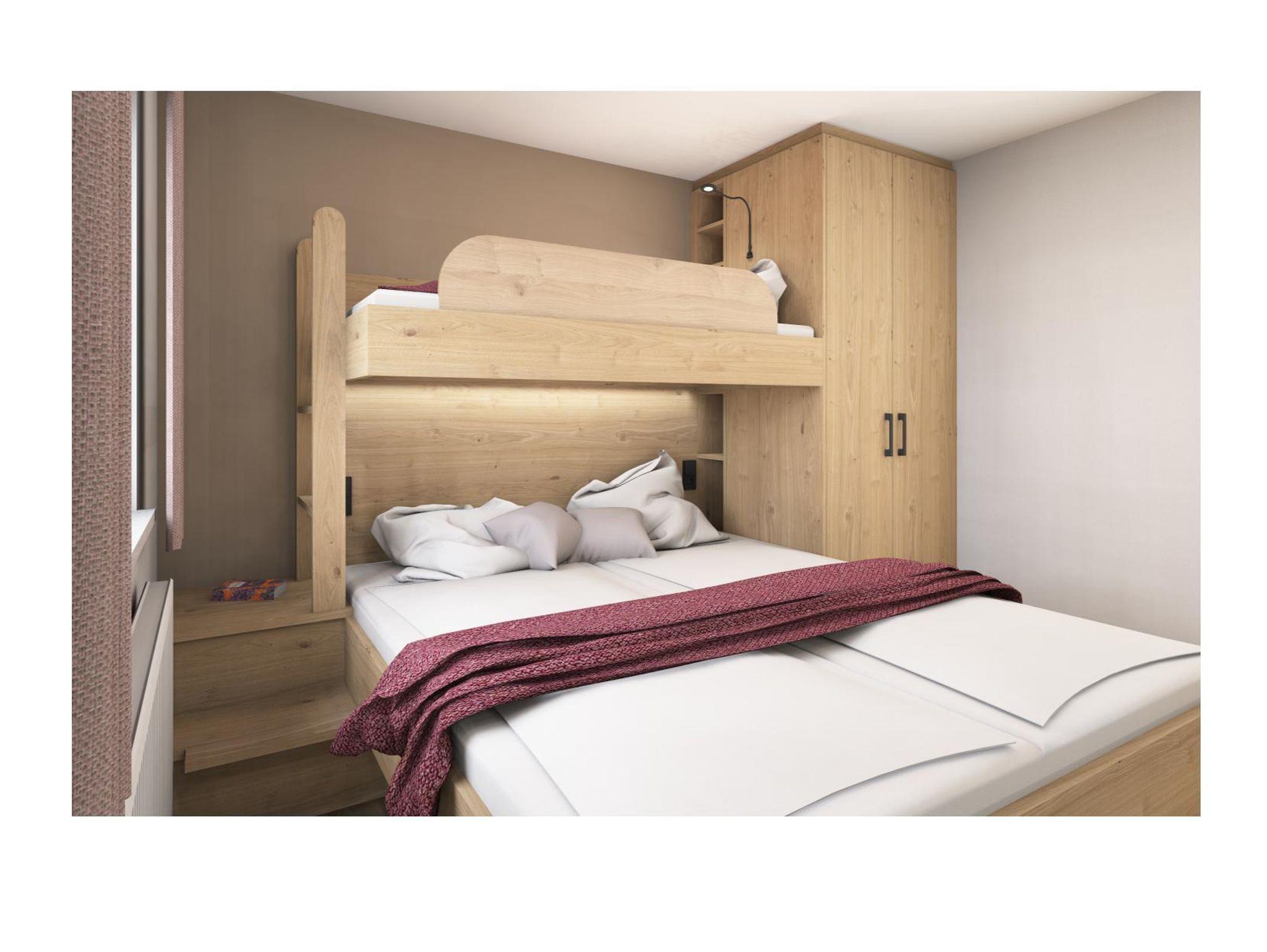 Küchenzeile m. Spülmaschine und Backofen, 2 Schlafzimmer m. Doppelbett sowie einem zusätzlichen Etagenbett, DU/WC,