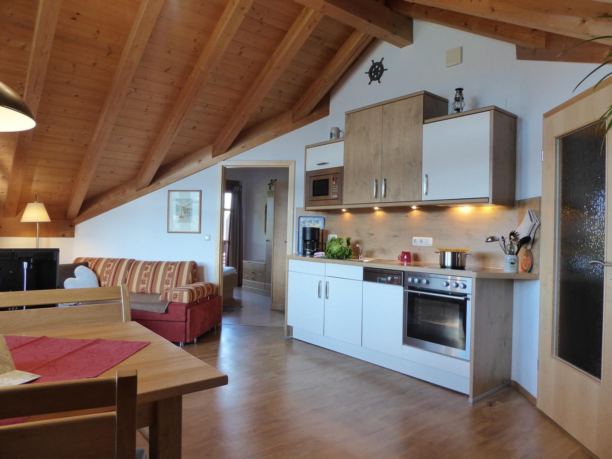 Die Wohnung Seeblick für 2 Personen ist 50 m² groß und hat zwei Balkone. Der Giebel mit dem großen Fenster und Balkon gewährt den freien Blick auf den Großen Alpsee. Der zweite Balkon, nach Osten gerichtet, lädt ein zum Frühstück in der Morgensonne mit dem Blick auf den Grünten. Im gemütlichen Wohnraum steht eine Couch mit Sessel, Sat TV , Safe, Stereorecorder und einen kostenlosen Internetzugang (WLAN), eine Sitzgruppe mit Blick auf den Großen Alpsee, sowie eine komplett eingerichtete Küchenzeile mit Mikrowelle, Spülmaschine, 4-Plattenherd, Backofen, Kühlschrank mit ***Gefrierfach, Toaster, Wasserkocher und Kaffeemaschine, Geschirr, Töpfe und Besteck etc.