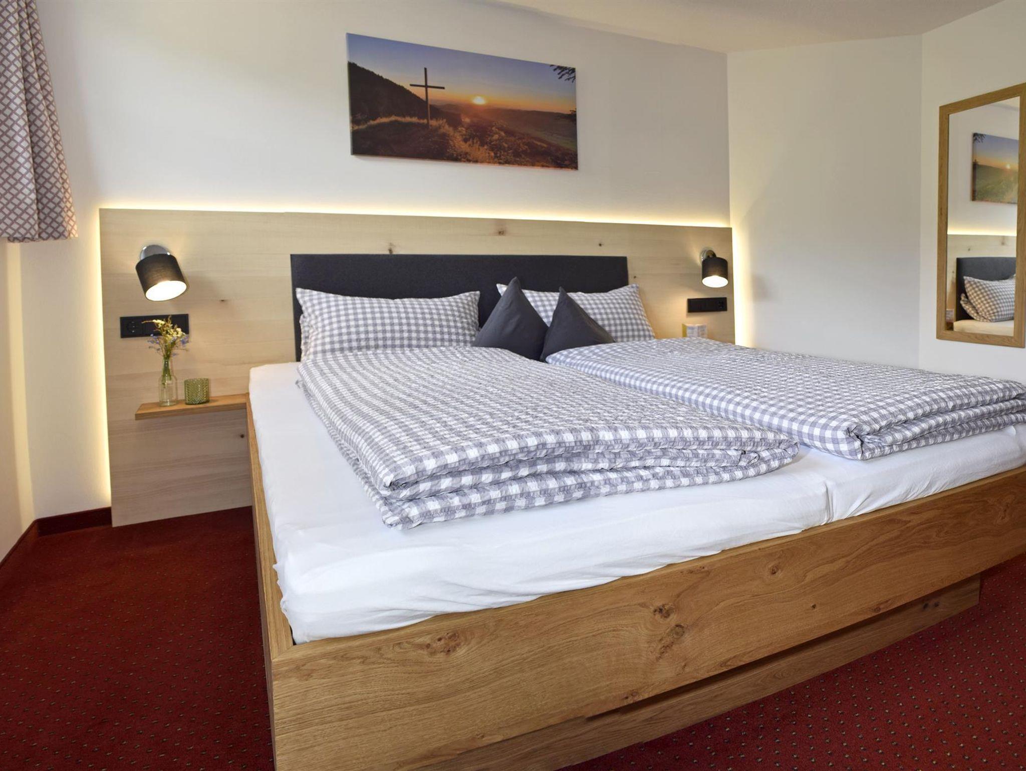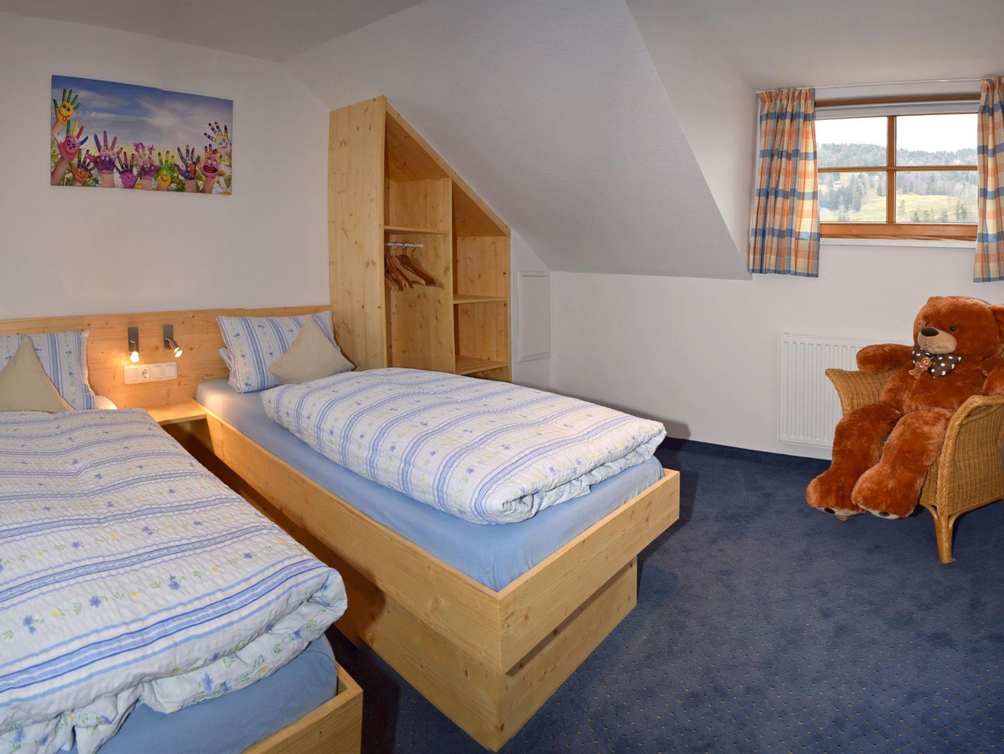 Unsere Ferienwohnung verfügt über zwei separate Schlafzimmer, geeignet für 4 Personen. Zusätzlich kann im Elternschlafzimmer ein Gitterbett gestellt werden.