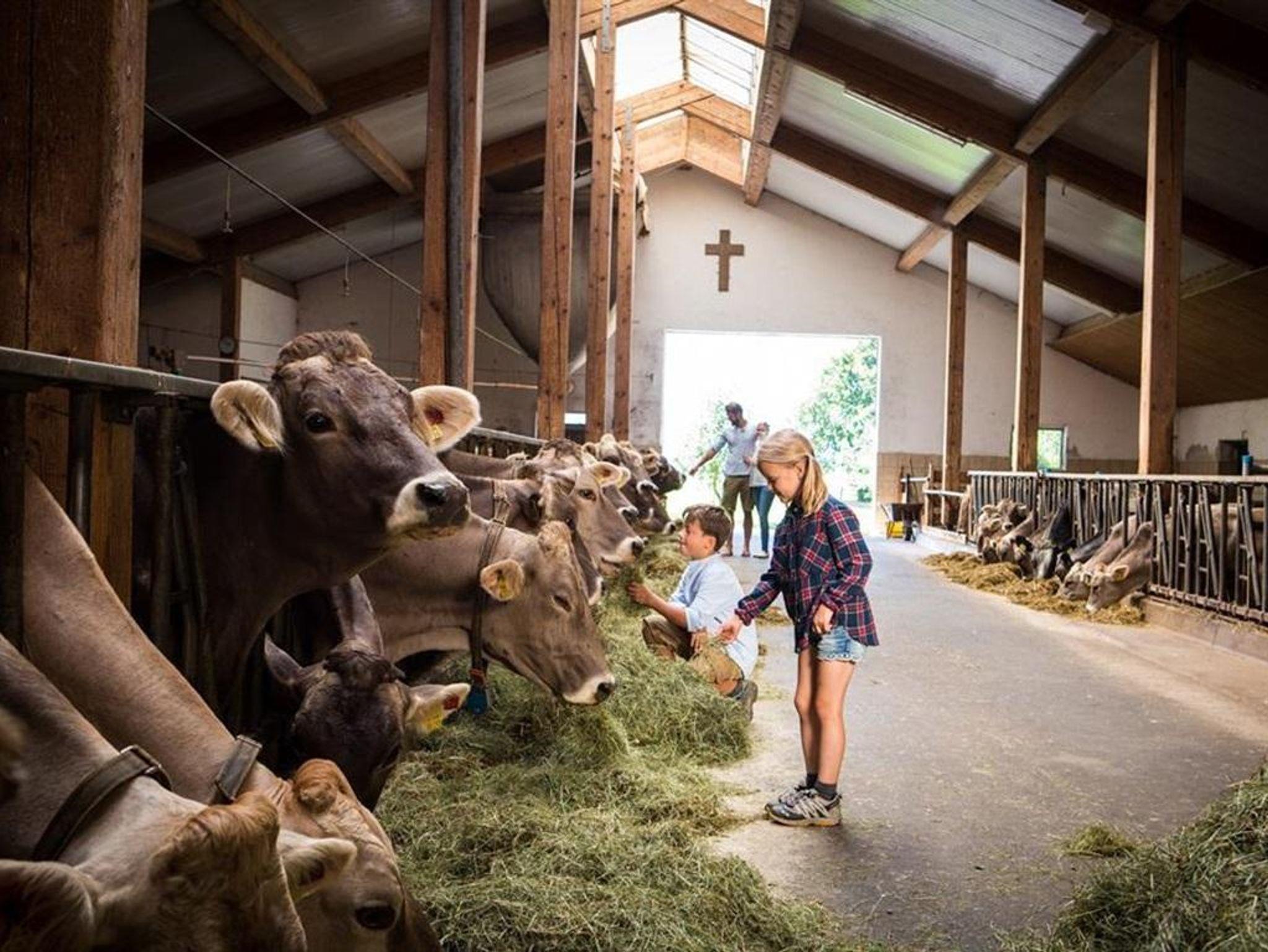 Kinder finden auf dem Hof viel platz zum spielen, Tiere streicheln und füttern.