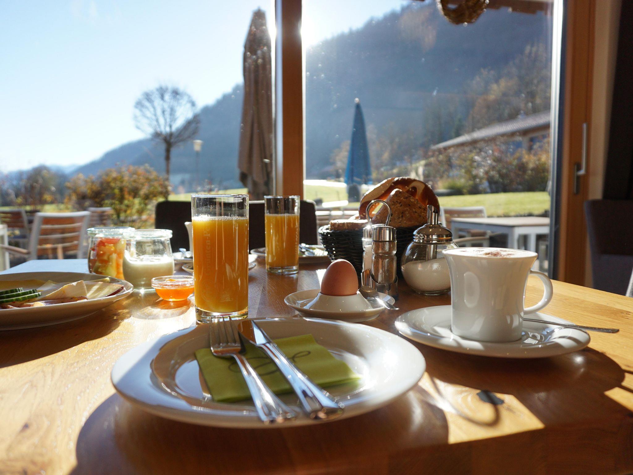 Unser Frühstücksbuffet besticht durch regionale Köstlichkeiten und lässt Sie gestärkt in den Tag starten. Nach einem erlebnisreichen Tag laden unsere Sauna und die Terrasse zu erholsamen Stunden ein. Während der Frühstücksraum ein gemütliches Ambiente schafft, um den Tag bei einer Tasse Kaffee zu planen, steht er auch für gesellige Abende mit einem Getränkeangebot zur Verfügung.