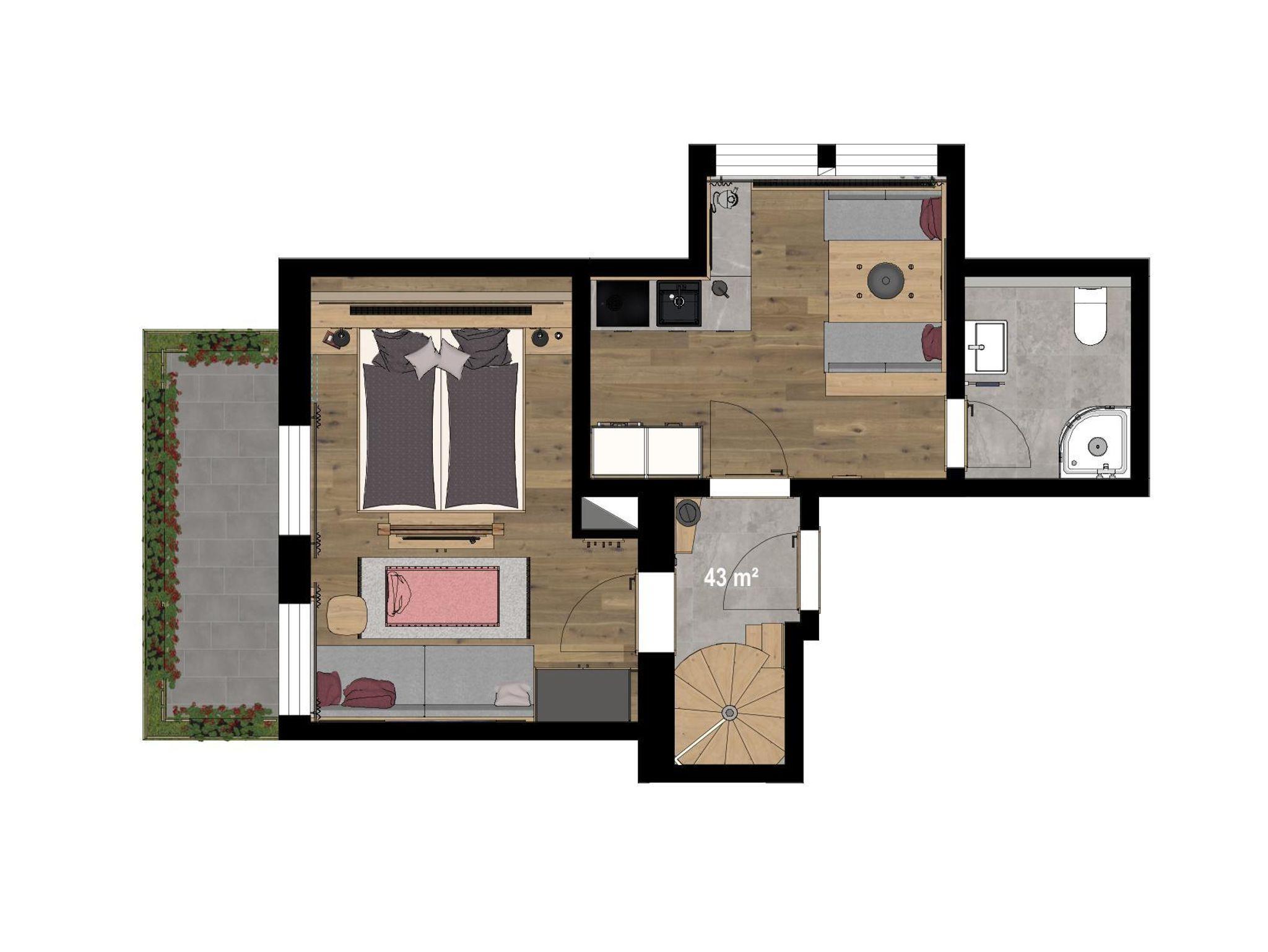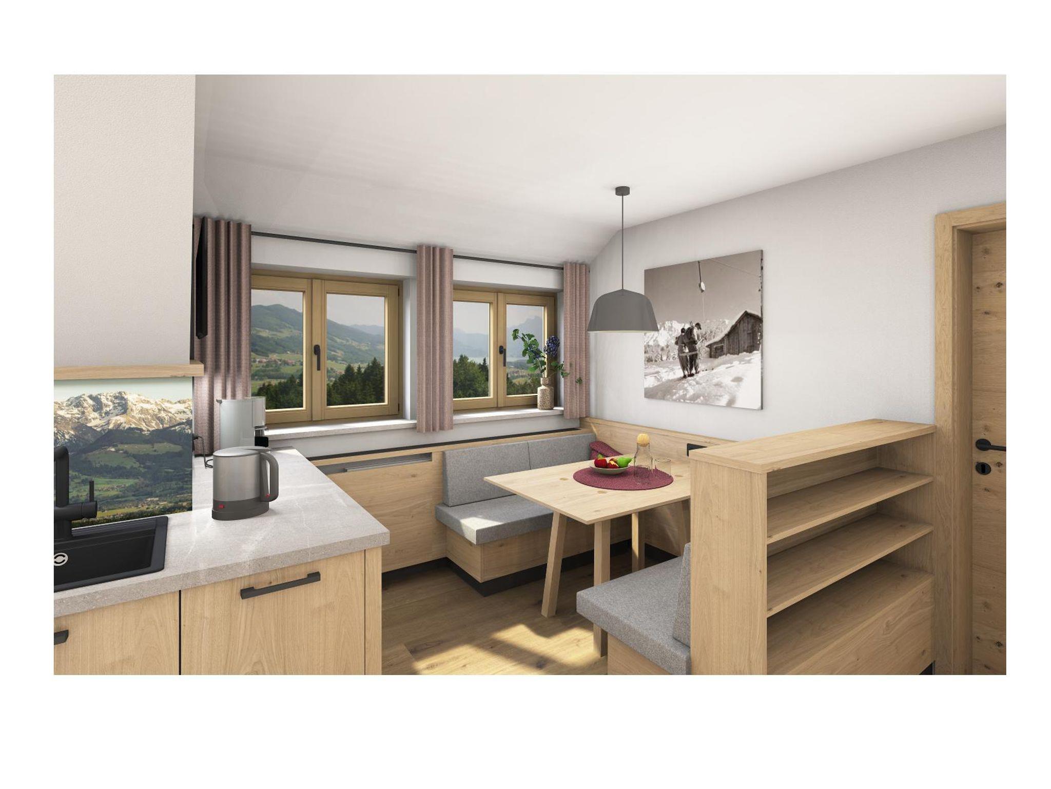 2. Etage ca. 43 qm, f. 1- 4 Personen, Wohnküche mit Essecke,
