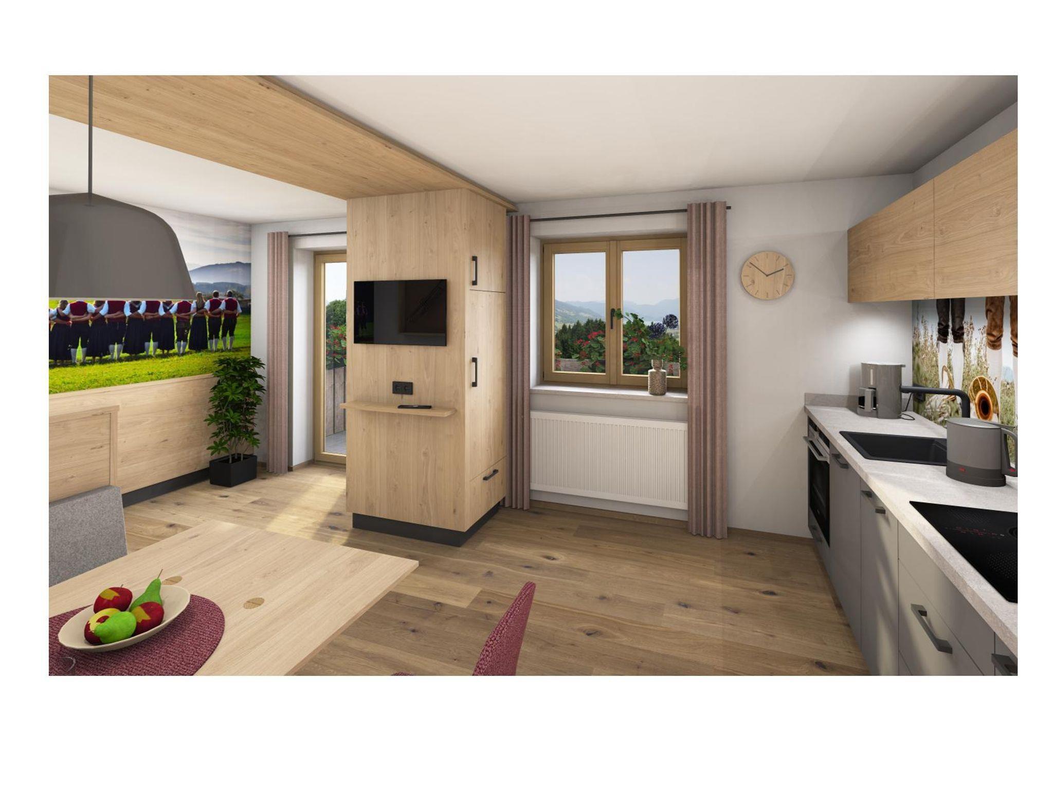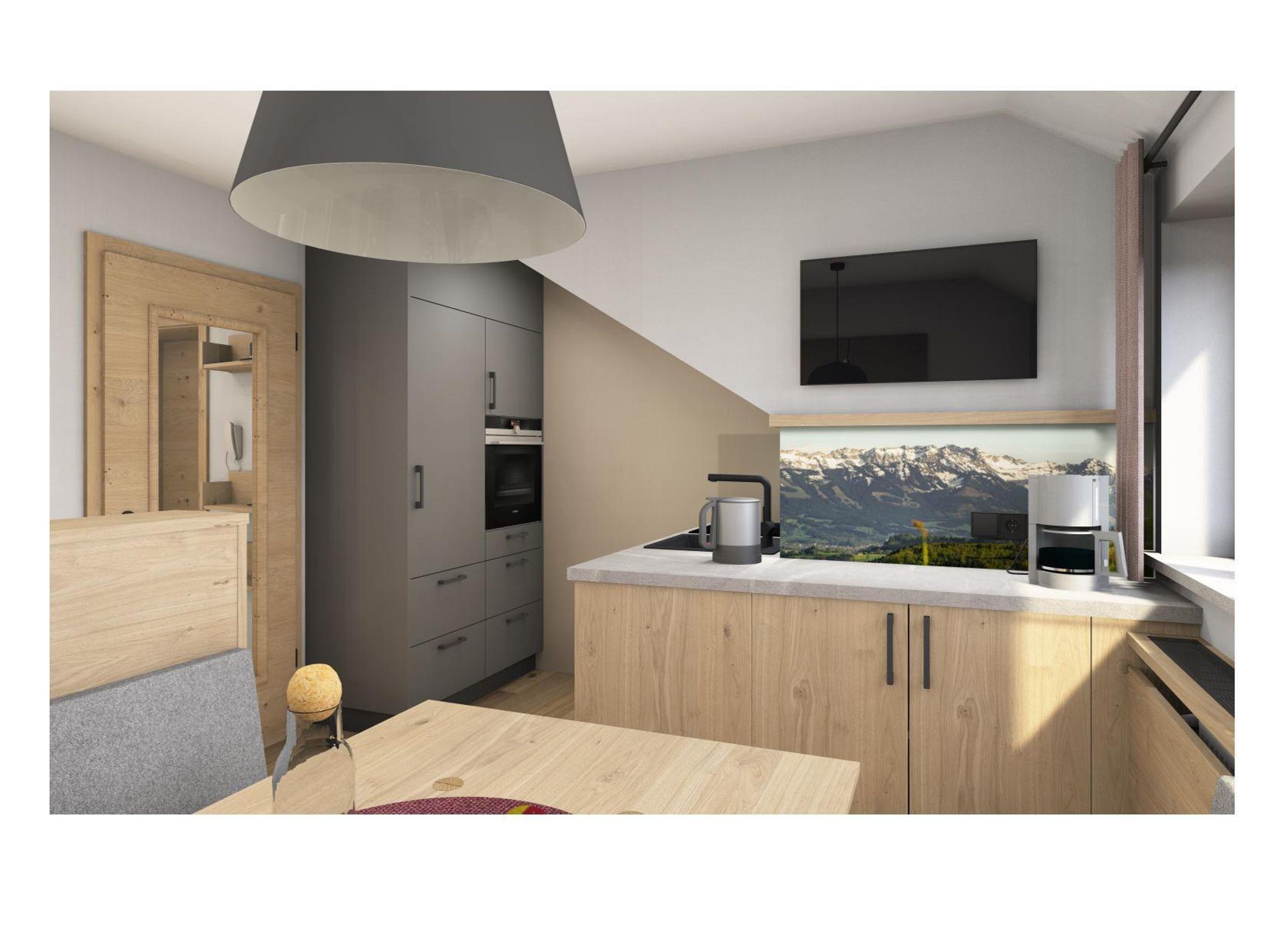 Küchenzeile m. Spülmaschine und Backofen, SAT-TV-Internet, Schlafzimmer mit Doppelbett und Schlafcouch SAT-TV-Internet, zusätzliches Kinderzimmer mit 2 Betten (Galerie im Dachgeschoss)