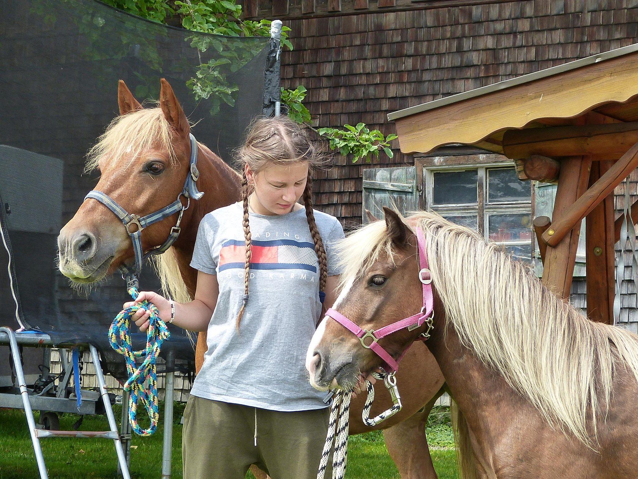 Da wir ja ein landwirtschaftlicher Betrieb sind, können angehende Bauernhofpraktikanten auf unserem Traktor mitfahren. Für kleine Pferdeliebhaber bieten wir geführte Runden auf unserem Pony, die sie mit ihren Eltern erleben können (ca. 30-45 min, Preise, Zeiten und Verfügbarkeit bitte vor Ort erfragen).