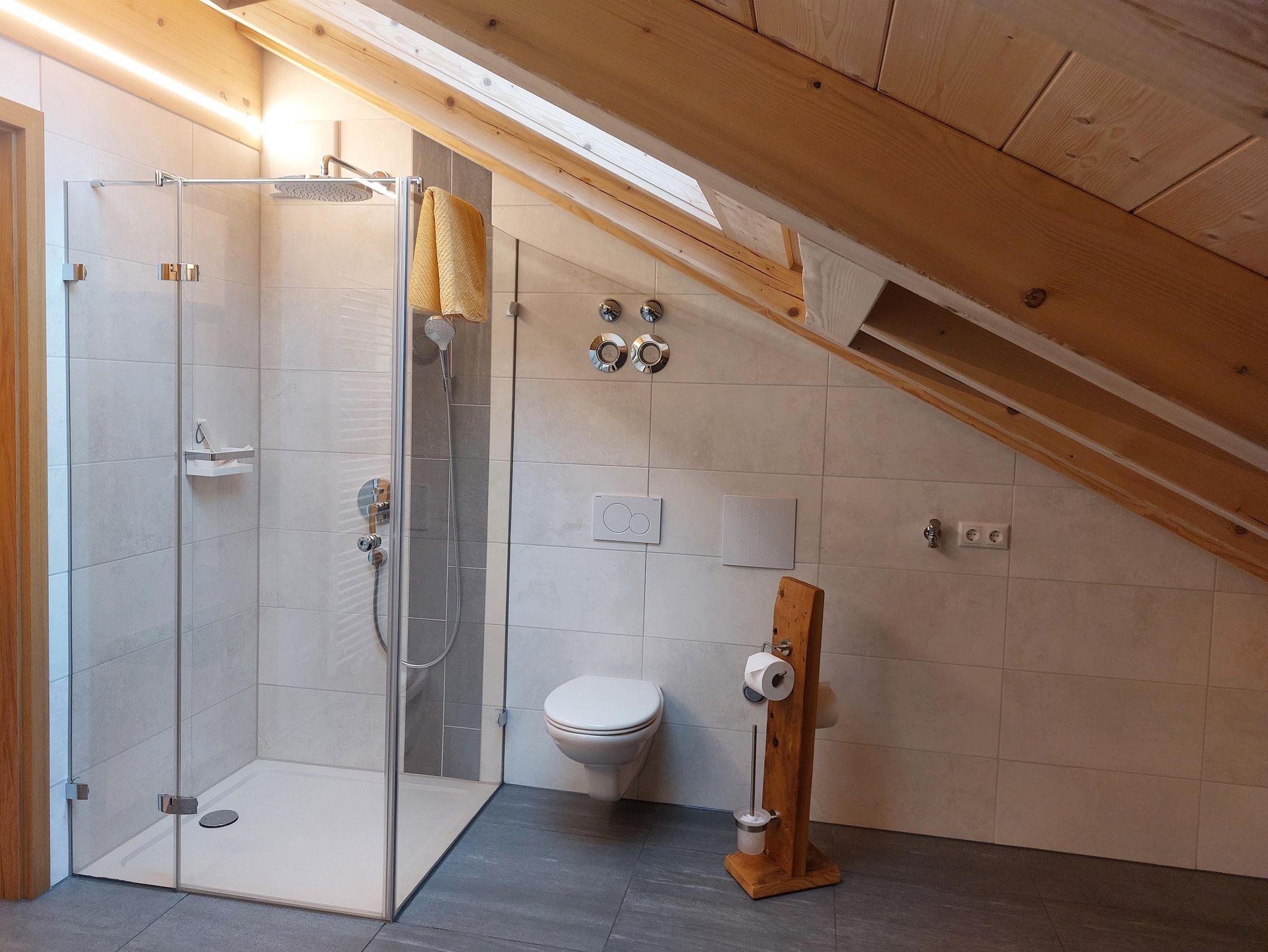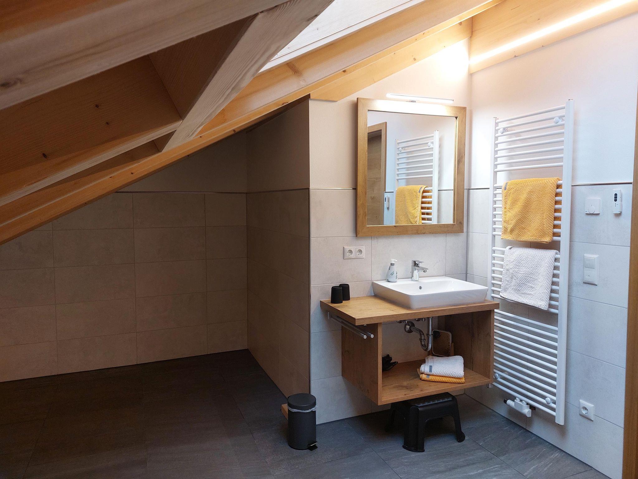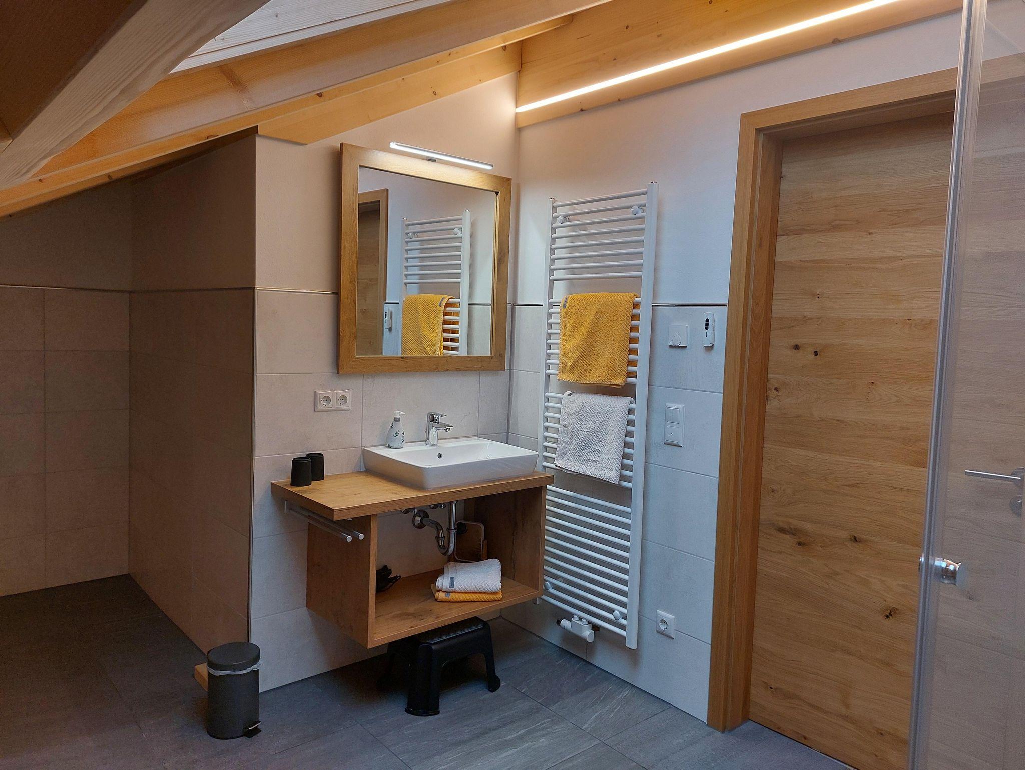• Bad mit Regendusche, Handtuchtrockner, Kosmetikspiegel, Fön