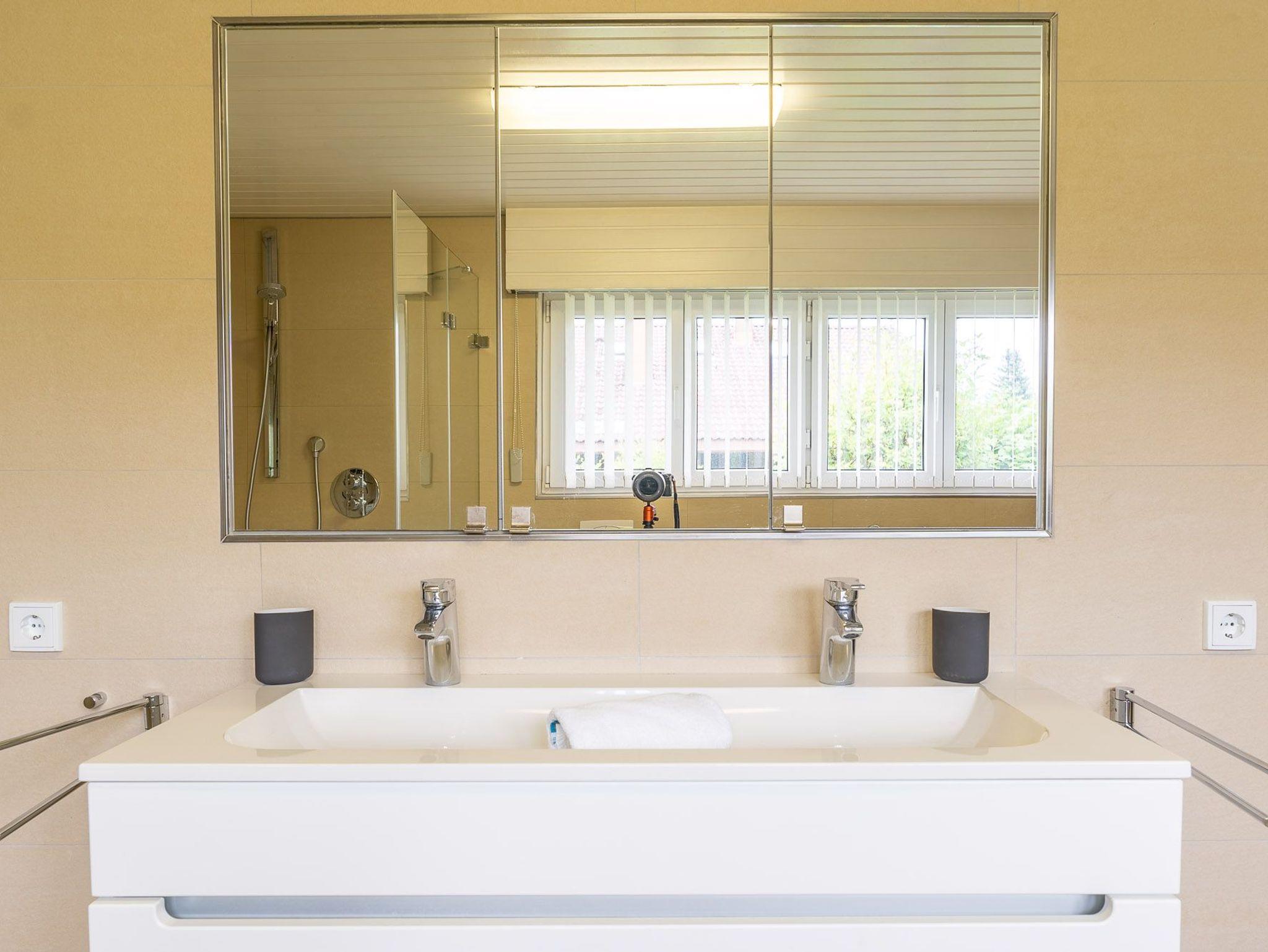 Zum Haus gehört eine Doppelgarage sowie ein Stellplatz im Freien.