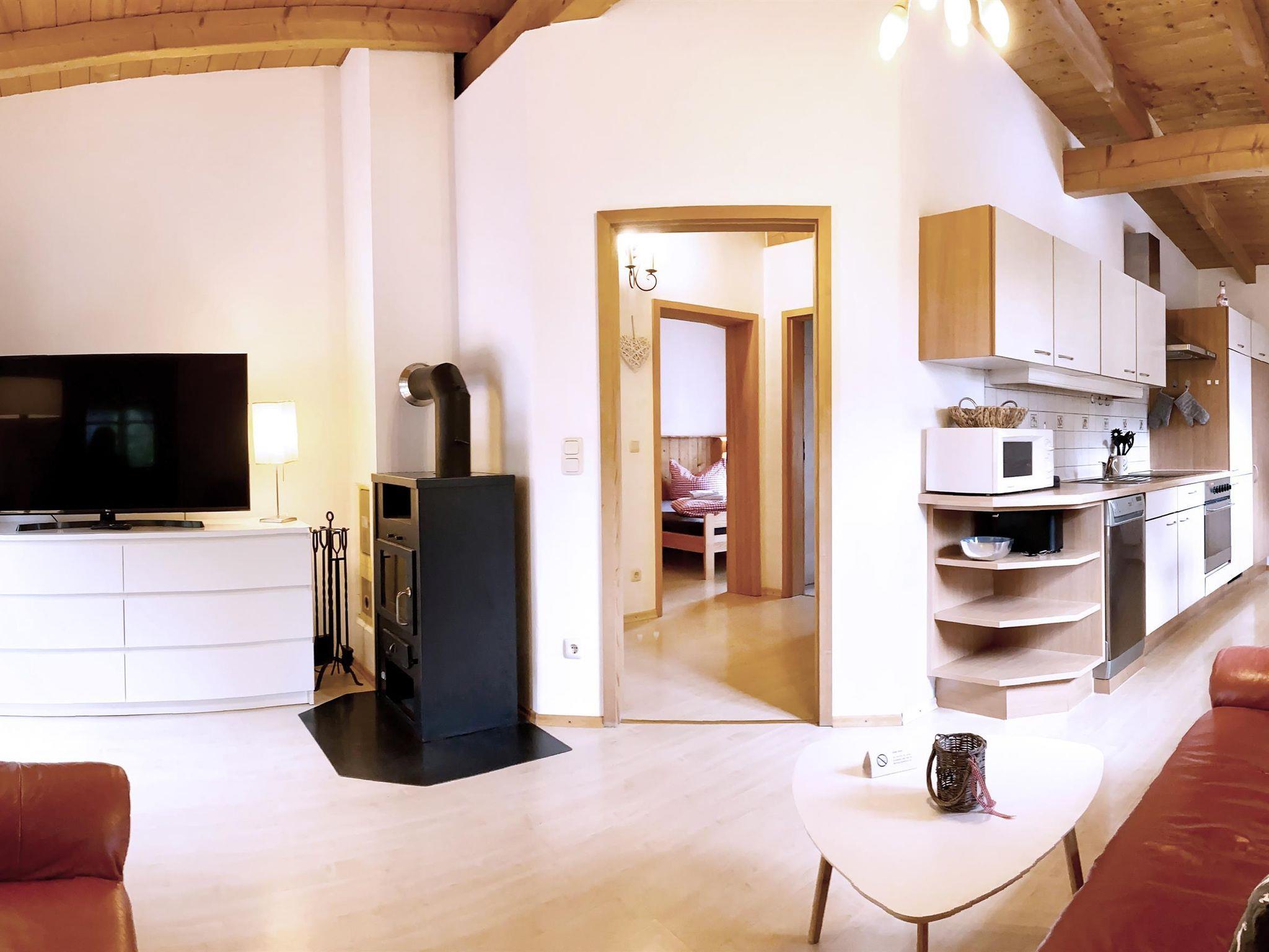 Unsere gemütliche 3-Zimmer Ferienwohnung Grünten bietet unseren Gästen die Möglichkeit einen völlig ungestörten Urlaub bei uns zu verbringen, da sie über einen eigenen Zugang zugänglich ist. Die Wohnung verfügt neben der geräumigen Wohnküche mit Schwedenofen über 2 getrennte Schlafzimmer sowie ein Tageslichtbad.