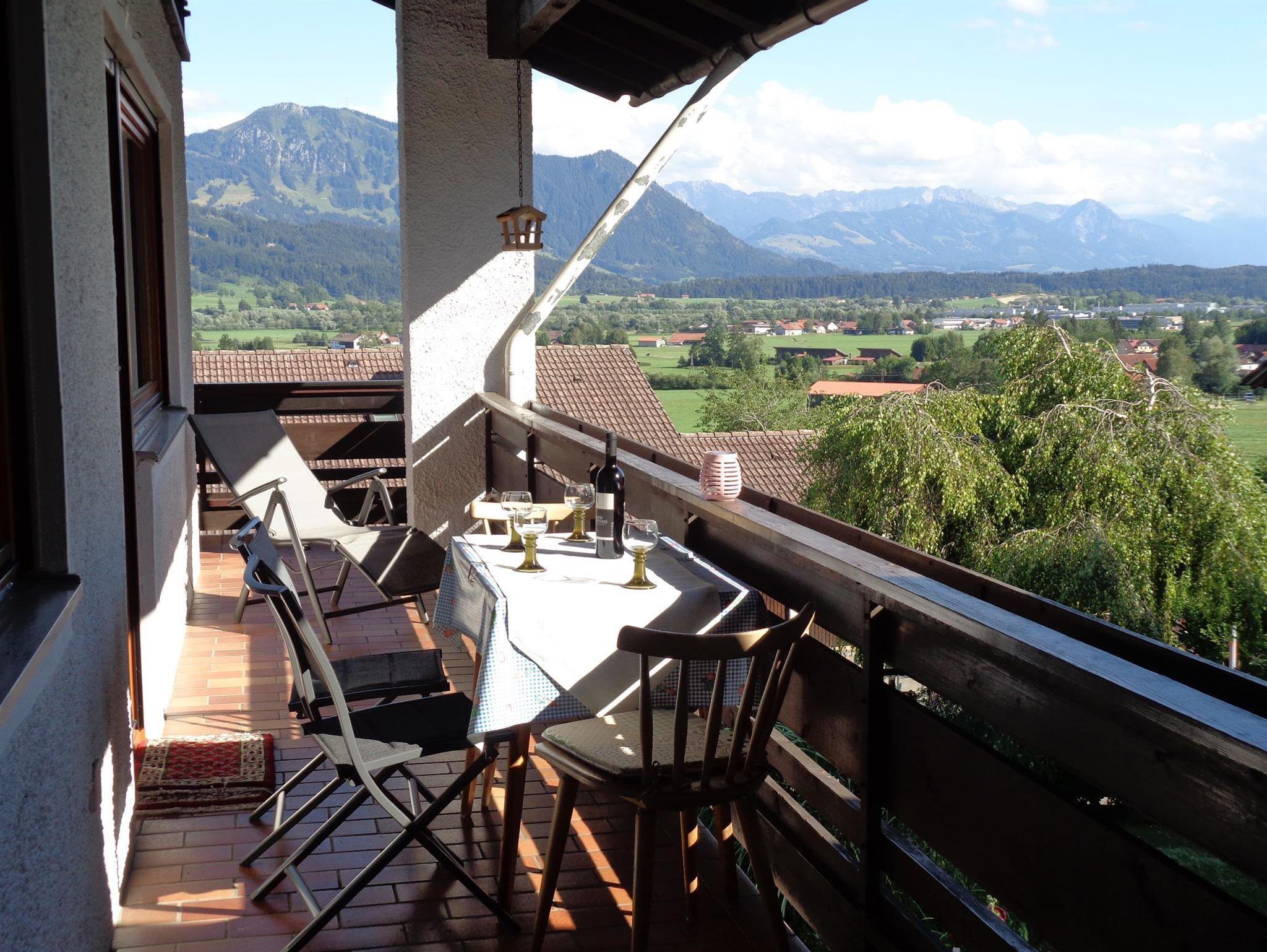 Großzügige Ferienwohnung mit großem Eckbalkon, teilweise überdacht und nach Südwesten ausgerichtet.