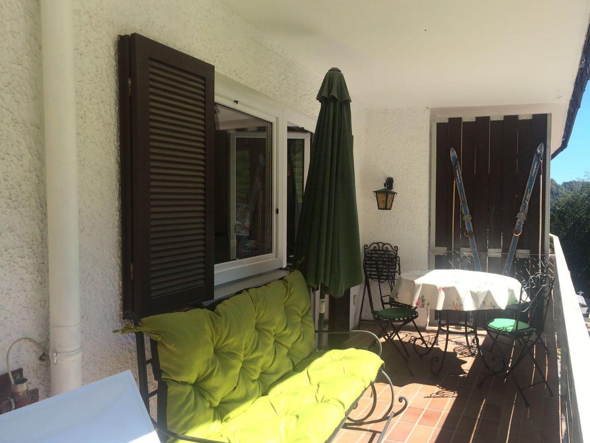 Aus dem Wohnzimmer gelangen Sie auf den in südlicher Richtung gelegenen 8 qm großen überdachten Balkon. Von hier schauen Sie auf den Hausberg von Bühl, das Immenstädter Horn (1.489 m üNN).
