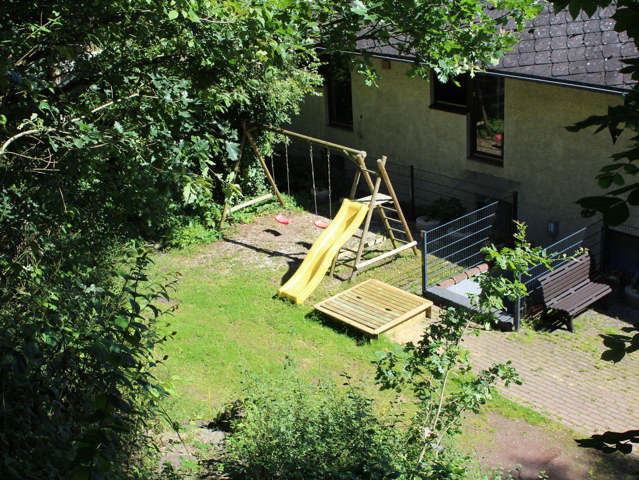 Die nach Süden exponierten Balkone sowie die große Terrasse mit Grillmöglichkeit und Gartenbestuhlung laden zum verweilen und genießen ein. Auf der Gemeinschaftsterrasse hinter dem Haus und dem weitläufigen Gelände rund ums Haus befinden sich eine Tischtennisplatte und ein Kinderspielplatz mit Schaukel und Rutsche sowie Sitzgelegenheiten unter Bäumen.