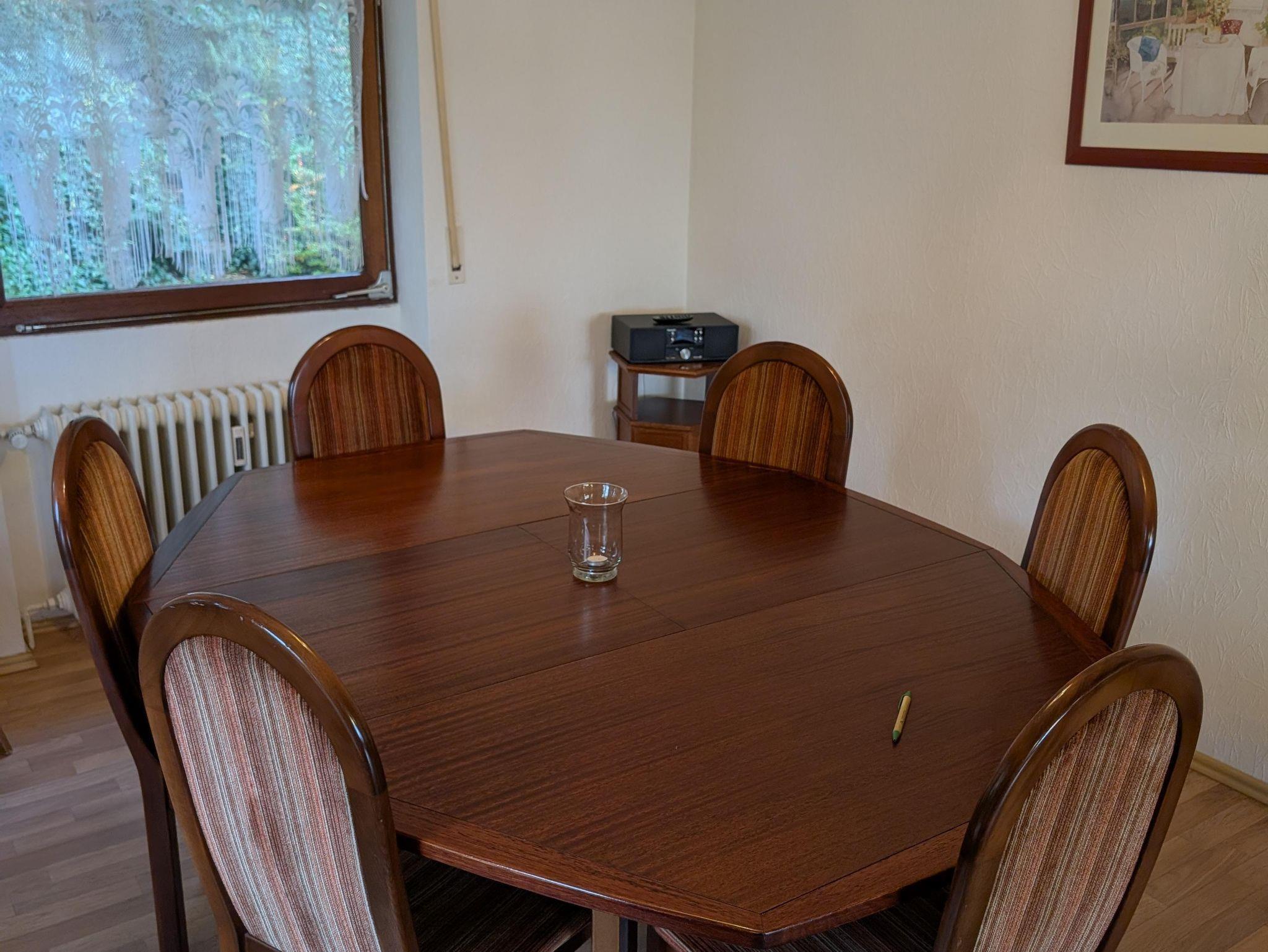 Bei Buchung von mehreren Wohnungen bieten wir auch für Gruppen bis 22 Personen Platz, die alle zusammen in dem Gemeinschaftsraum an einem Tisch zusammen sitzen können.