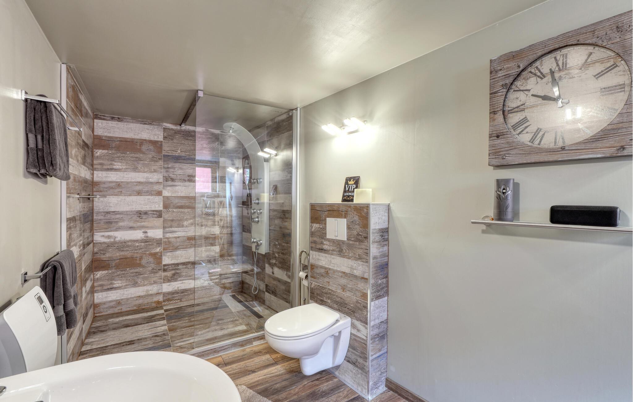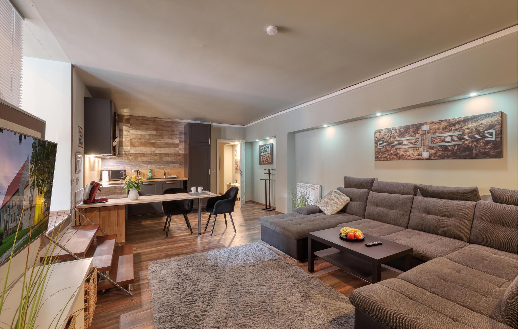 Hvis I som familie eller venneflok er på udkig efter en boligoplevelse ud over det sædvanlige, er denne fantastiske lejlighed i Mackendorf et helt oplagt valg. Lejligheden er virkelig flot indrettet med sans for detaljen, moderne møbler og et veludstyret køkken, der gør madlavningen til en leg, som flere kan være med til. Ingen kommer til at kede sig her; hvis I gerne vil holde formen ved lige, kan I benytte jer af de glimrende fitness-faciliteter. Hvis I gerne vil nyde god fitness, kan I svede godt igennem i den infrarøde sauna. Og hvis I gerne vil nyde en storfilm med alle sanser, er der mulighed for det i den absolut veludstyrede hjemmebiograf.
