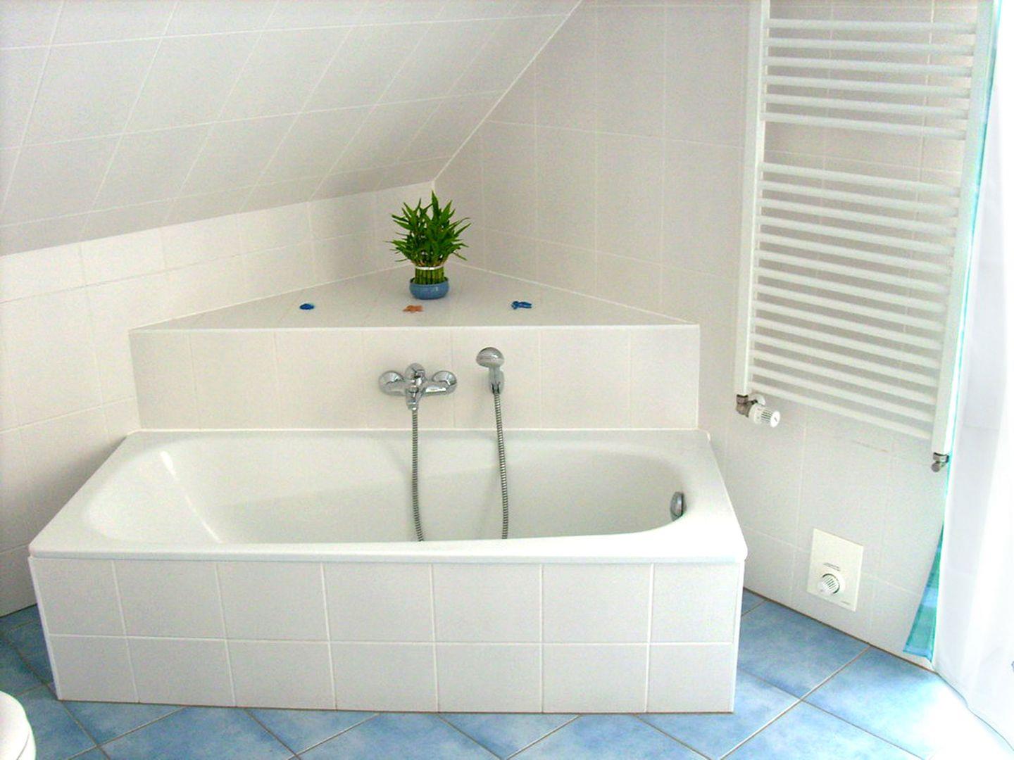 Das Haus verfügt über 2 Bäder, eins mit Dusche/WC und eins mit Badewanne/WC. Der Hauswirtschaftsraum mit Waschmaschine befindet sich im EG.