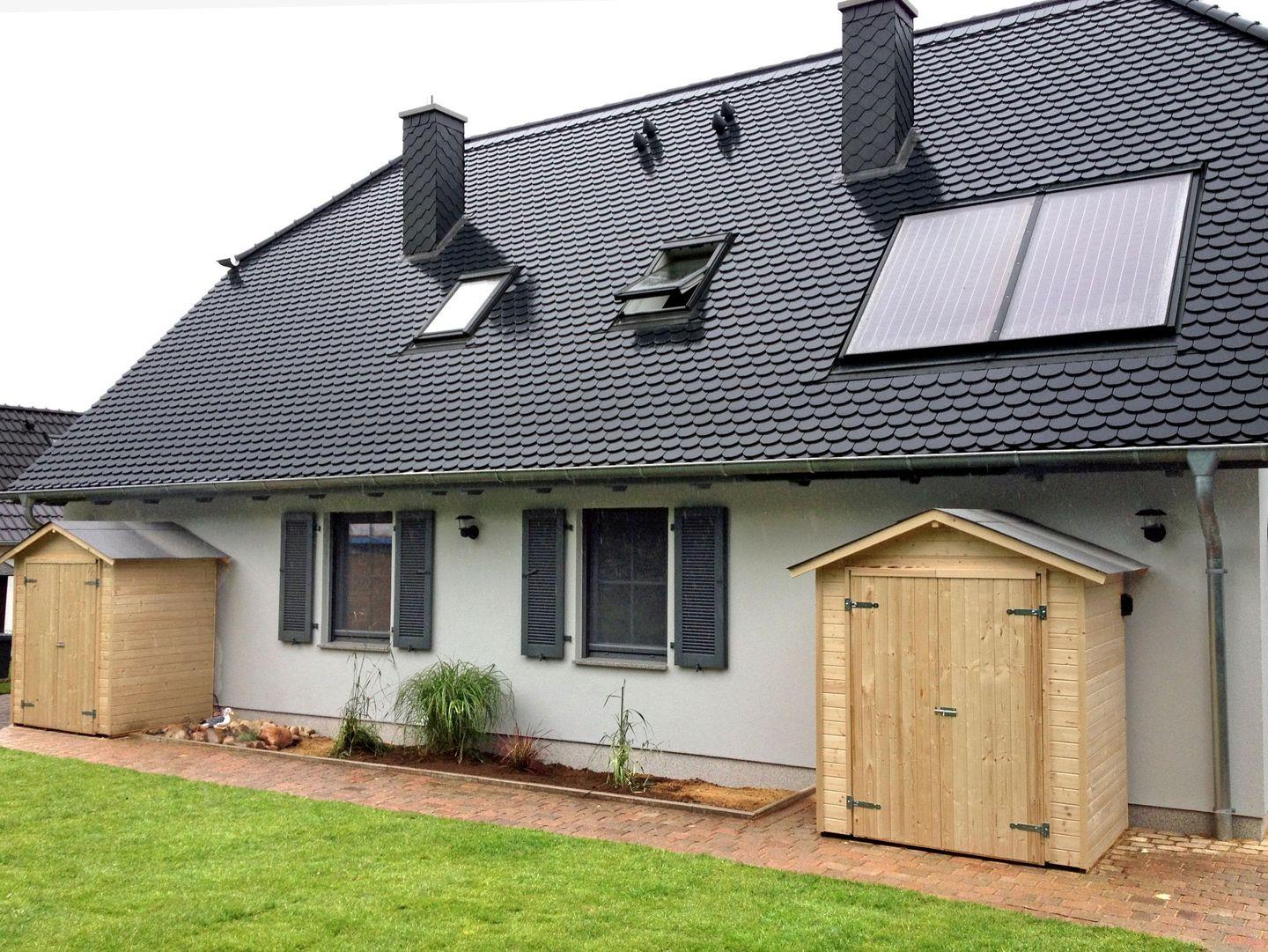 Jedes Haus verfügt über eine zweiseitige, abgetrennte Terrasse, so dass Sie individuell oder auch zusammen frühstücken oder grillen können.