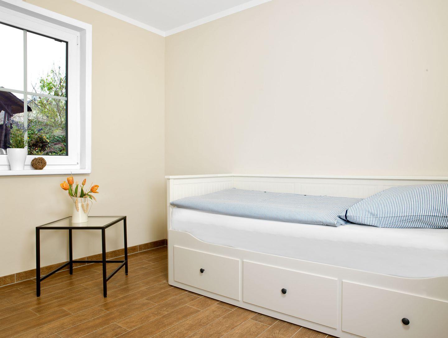 Im Erdgeschoss befindet sich ein separates Schlafzimmer und ein großes Bad, welches auch für gehbehinderte Personen nutzbar ist incl. einer großen, ebenerdigen Dusche .