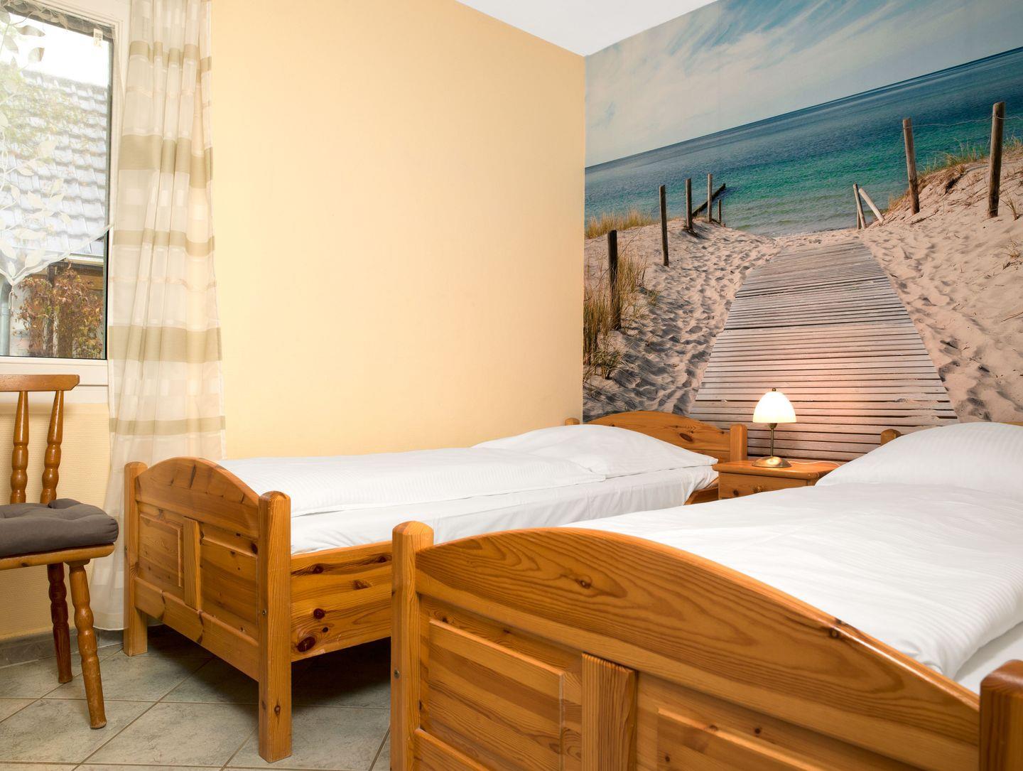 Ein Schlafzimmer mit zwei Einzelbetten und ein Schlafsofa im Wohnzimmer ermöglichen eine angenehme Nachtruhe für bis zu vier Personen.