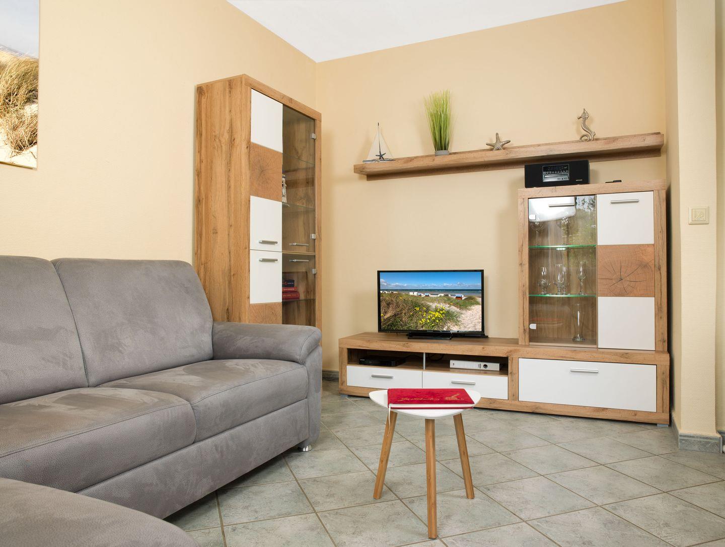Das Wohnzimmer ist mit SAT/TV und Radio/CD und einer gemütlichen Couch ausgestattet.