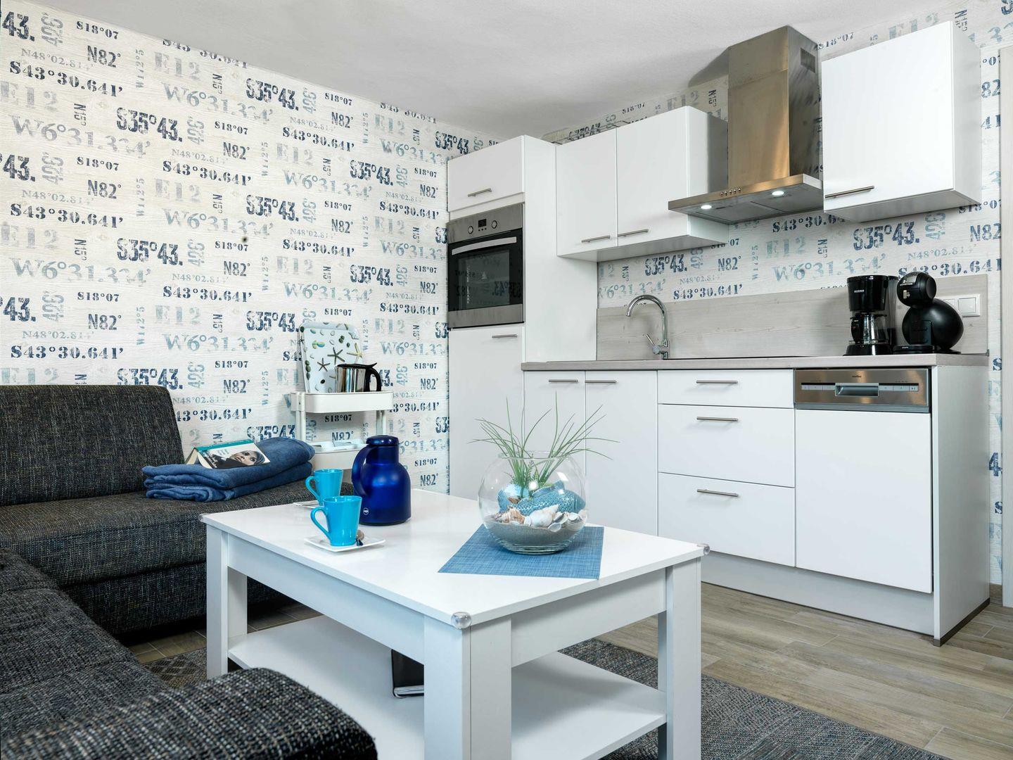 Die schön gestaltete Küche mit Backofen, Kühlschrank, Creankochfeld, Spülmaschine, Kaffeemaschiene und Toaster bietet Ihnen alle erforderlichen Annehmlichkeiten.