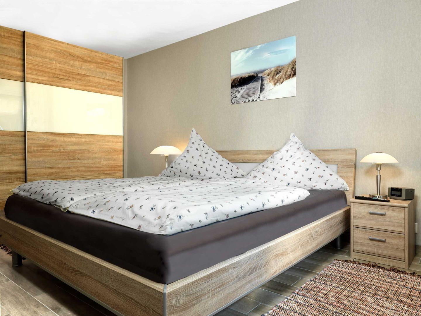 Ein Schlafzimmer mit Doppelbett und ein Schlafzimmer mit Etagenbett ermöglichen eine angenehme Nachtruhe für bis zu vier Personen.