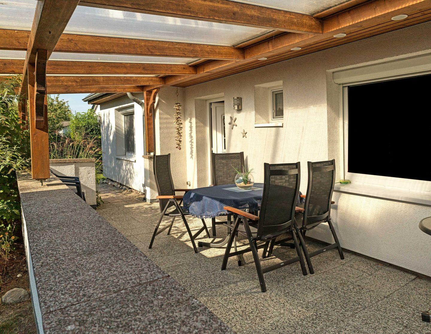 Ebenso stehen Gartenmöbel und Grill auf der Terrasse am Haus für Sie bereit.