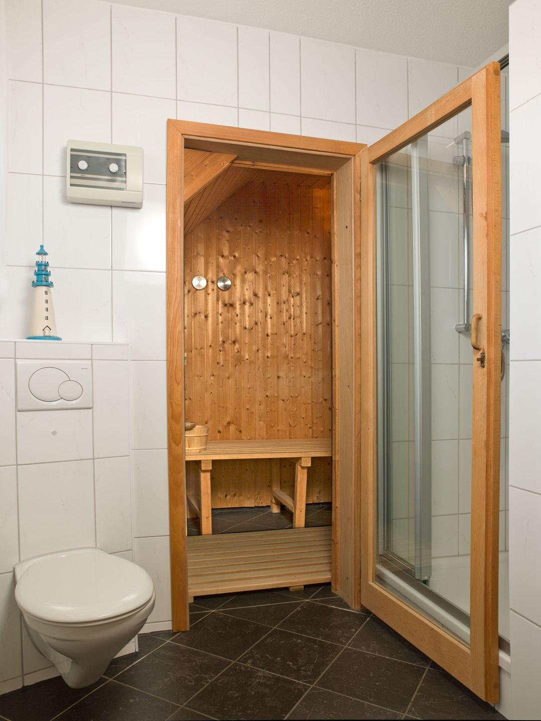 Das Bad mit Dusche/WC/Sauna befindet sich im OG.