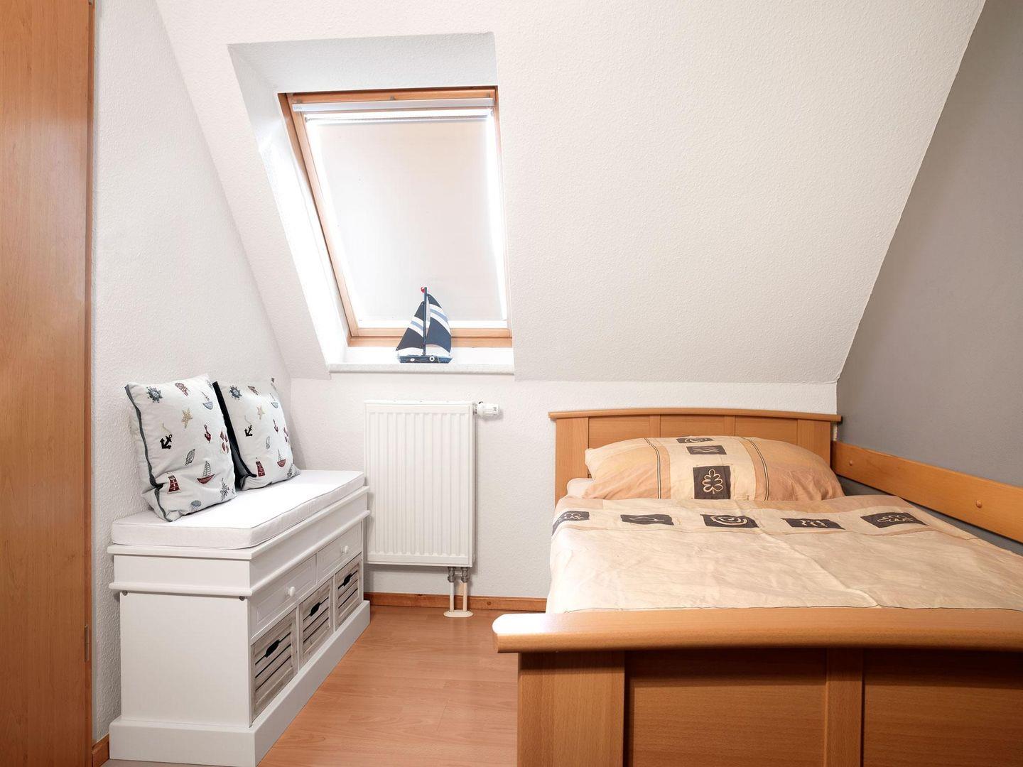 Ein gemütliches Schlafzimmer mit Doppelbett und ein Schlafzimmer mit zwei Einzelbetten erwarten bis zu 4 Personen im OG.