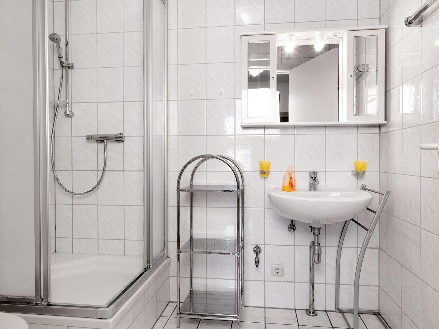 Das Bad ist mit Dusche/WC und Fußbodenheizung ausgestattet.